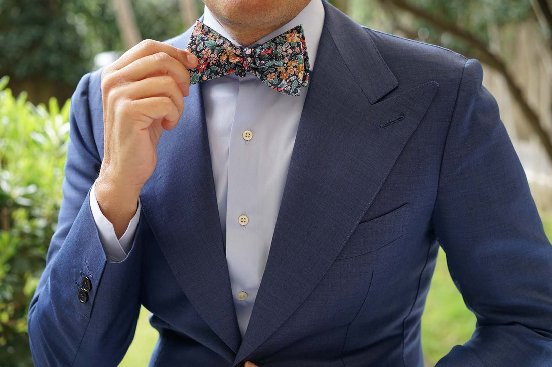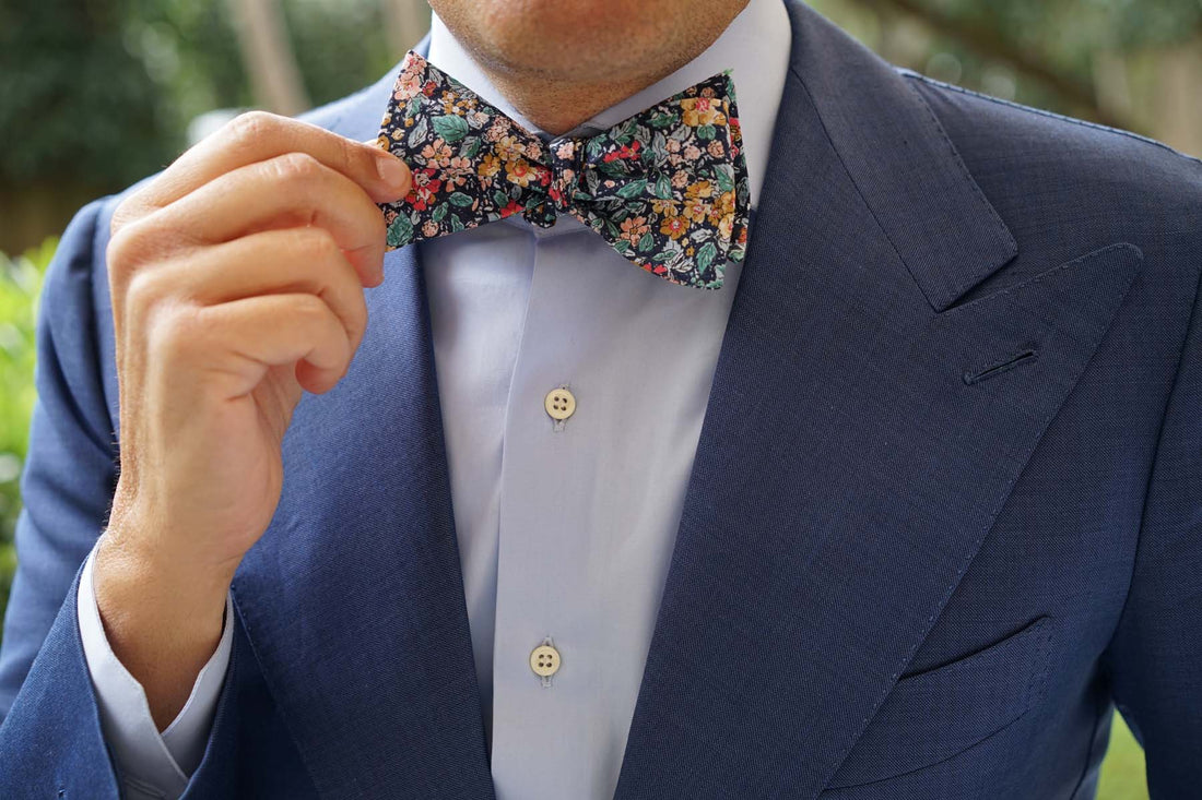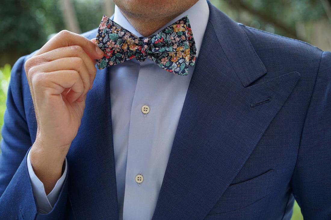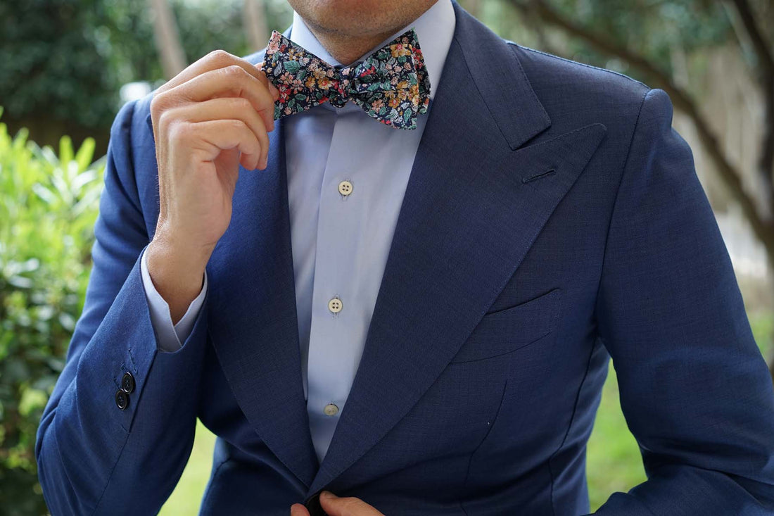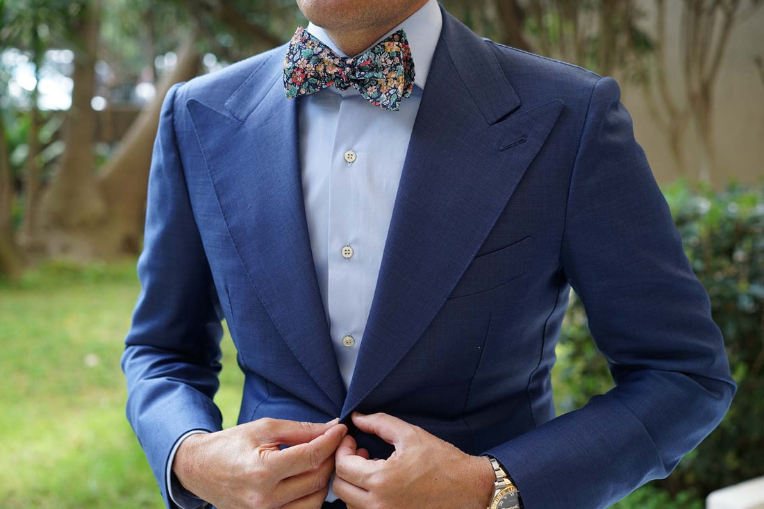 The superb floral patterns on the Stura Di Lanzo Self Tie Bow Tie are ebulliently decorated with green, light blue, pink and mustard highlights with a navy base. Impeccably handcrafted from a plush cotton blend, this untied bow tie effortlessly marries sophistication with top-notch tailoring. Designed exclusively by the Brothers at OTAA.