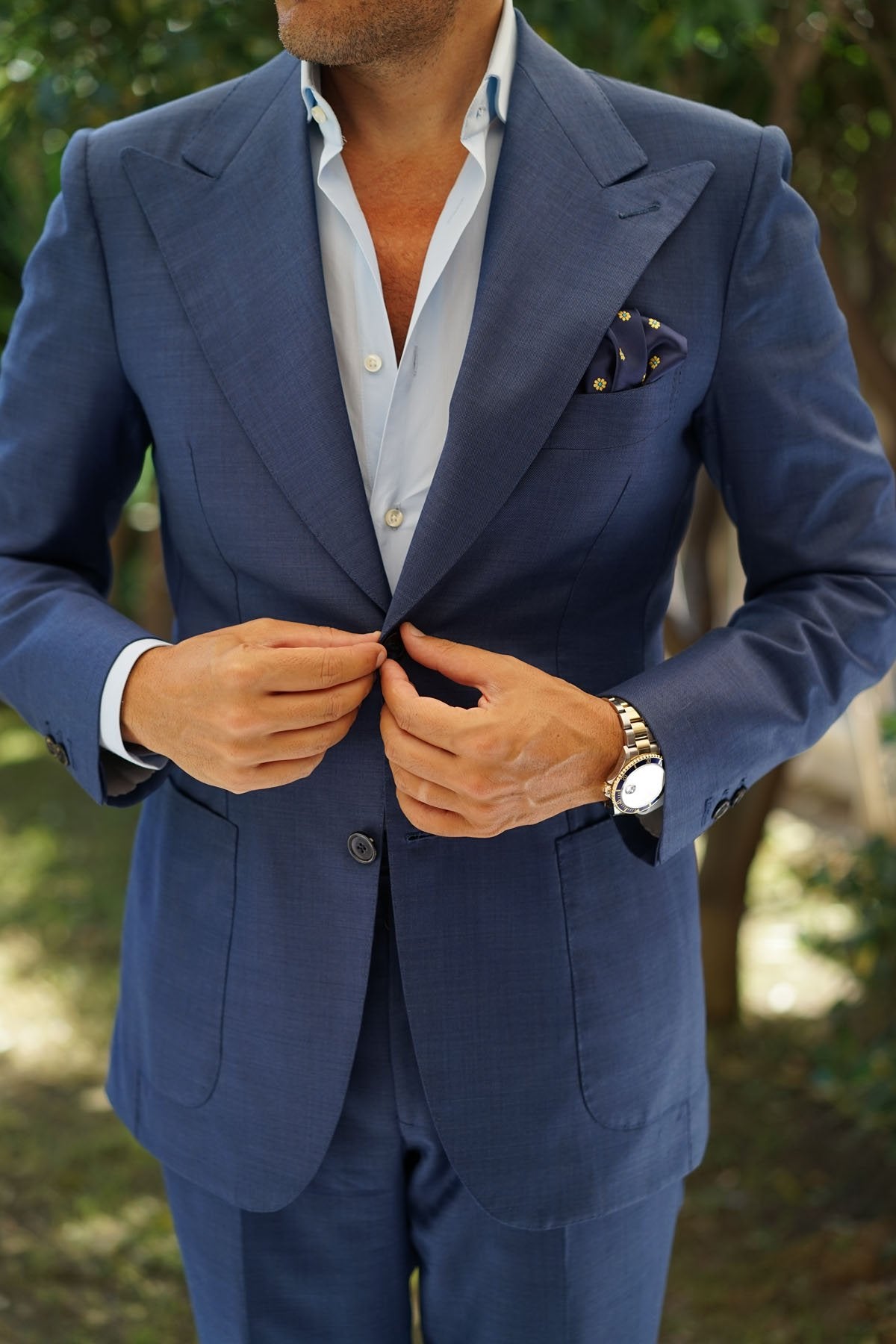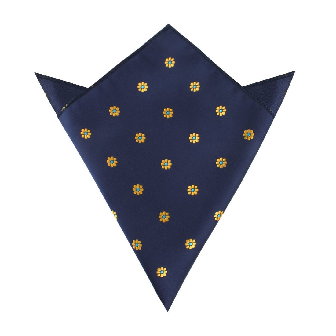This elegant Sunflower Pocket Square offers charming floral details atop a sophisticated navy blue fabric. Constructed by hand and cut from a plush, satin cloth, this handkerchief effortlessly marries floral style with superior quality. Let the flourishing yellow and blue accents give a vivacious accent to your everyday ensembles. Designed exclusively by the Brothers at OTAA.