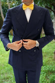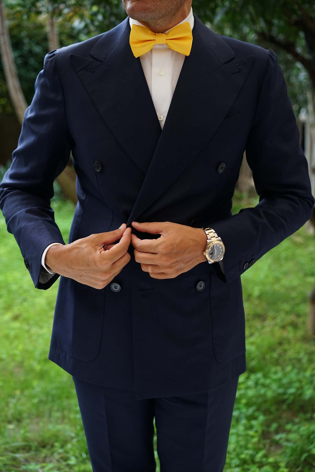 This Sunflower Yellow Satin Bow Tie is faultless choice for sophisticated style. The Brothers at OTAA prize exceptional tailoring, which is why this Sunflower Yellow Satin Bow Tie has been stitched by hand and cut from a fine satin fabric. Ebulliently finessed with a vibrant yellow palette, this pre-tied bowtie brings an eye-catching point of difference to classic suit styles. The luxurious satin material offers a subtle lustre finish that’s beautifully smooth to the touch. Wear this Sunflower Yellow Satin Pre-tied Bowtie to make an elegant statement at formal affairs; alternately add it to your boardroom looks for a confident aesthetic. Designed exclusively by the Brothers at OTAA.