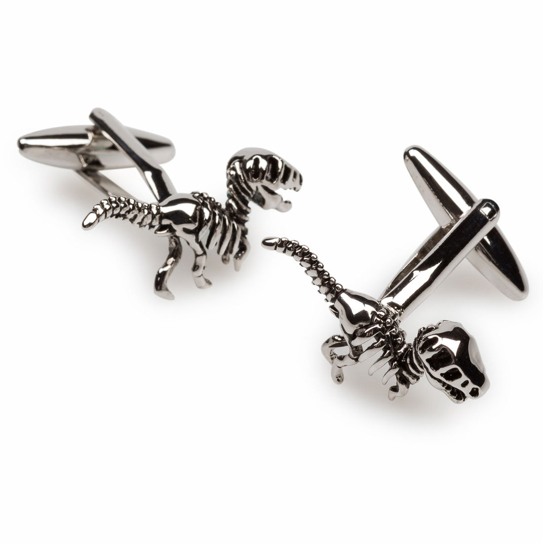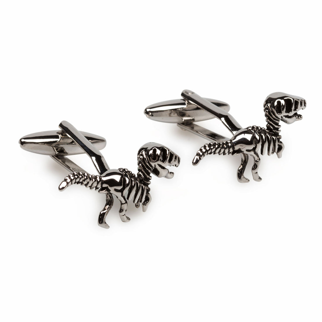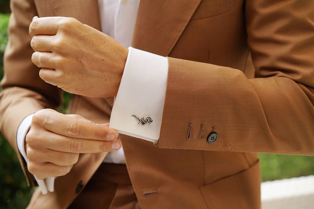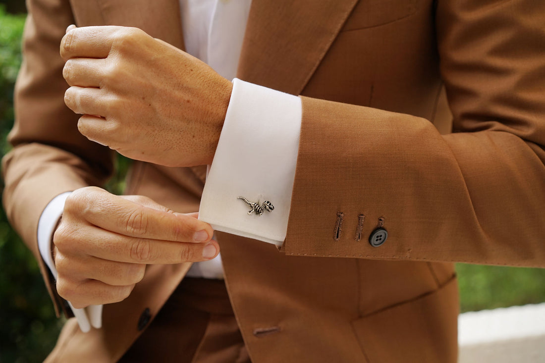 OTAA's T-Rex Cufflinks are boastful of textural intricacy and expert craftsmanship. Fossils of the tyrannosaurus rex are found in rock formations that date back to the Maastrichtian age, 68 million years ago. The word 'tyrannosaurus' is derived from 'tyrant', and rex means 'king' in Latin, so it is no wonder this tyrant king design was curated to embolden your stride with power. Hand-chiselled with incredulous precision, this design is etched with the tyrannosaurus rex with detailed embellishments. The silver finish incites a cool-toned palette that will finesse your attire with an air of sophistication. A fierce accompaniment to a polished look, these T-Rex Cufflinks will keep your assemblage fruitful with possibilities.