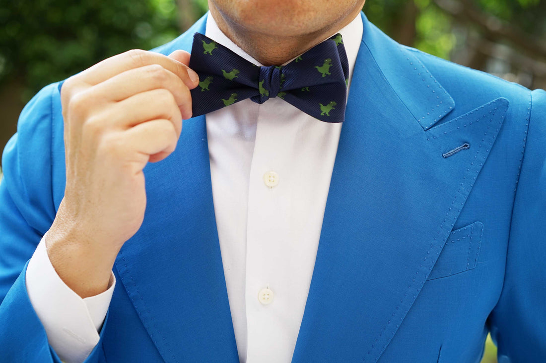 There is strong debate about whether the Tyrannosaurus Rex was a predator or scavenger. It had small arms that would have made it hard to grip prey, suggesting it may have been a scavenger. On the other hand, evidence in favour of it being a predator includes its forward pointing eyes that would’ve have allowed for greater depth perception to capture prey. Inspired by the loveable Dinosaur that we saw in the flesh, this T-Rex Pixel Dinosaur Self Bow Tie exudes sophistication and is hand cut and sewn on a classic navy backing. Designed exclusively by The Brothers at OTAA.