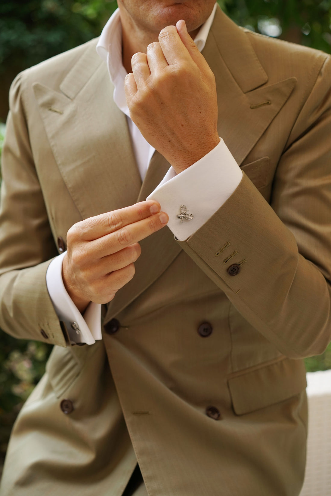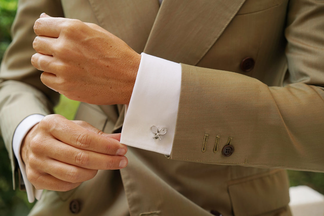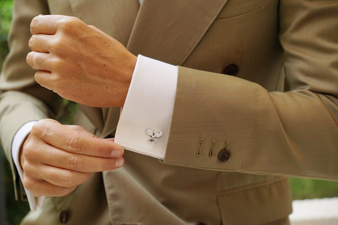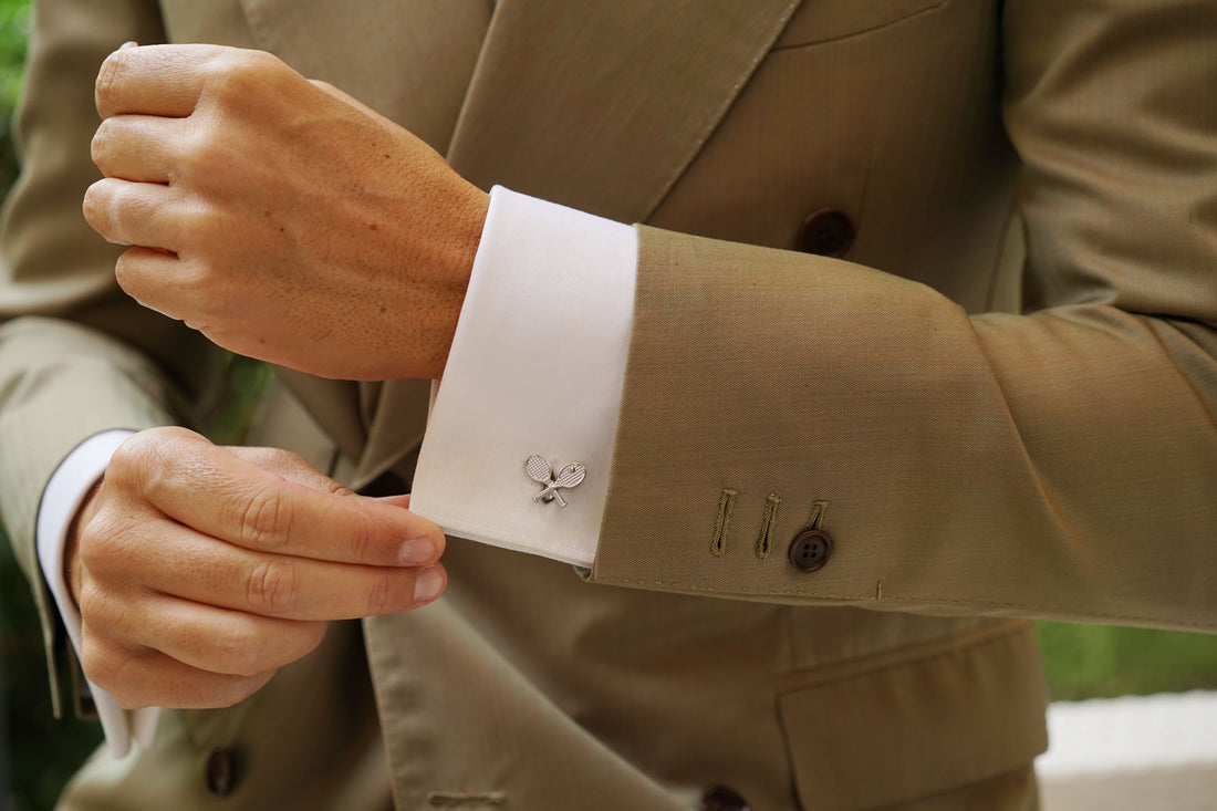 Jeu de paum, 'game of the palm', originated in the monastic cloisters in France in the 12th century. It wasn't until the 16th century that rackets came into use and transformed into the sport we know today as 'tennis'. A popular sport adopted by Henry Vlll of England, the immaculate details of these Tennis Racquet Cufflinks will have your suit brimming with nobility. With hand-chiselled embellishments and a luxurious silver finish, these cufflinks are matched in design and quality. Expertly crafted from rhodium, this design is embossed with two racquets that feature impeccable embellishments. The silver finish incited a cool-toned palette that will adorn your attire with an air of exclusivity.