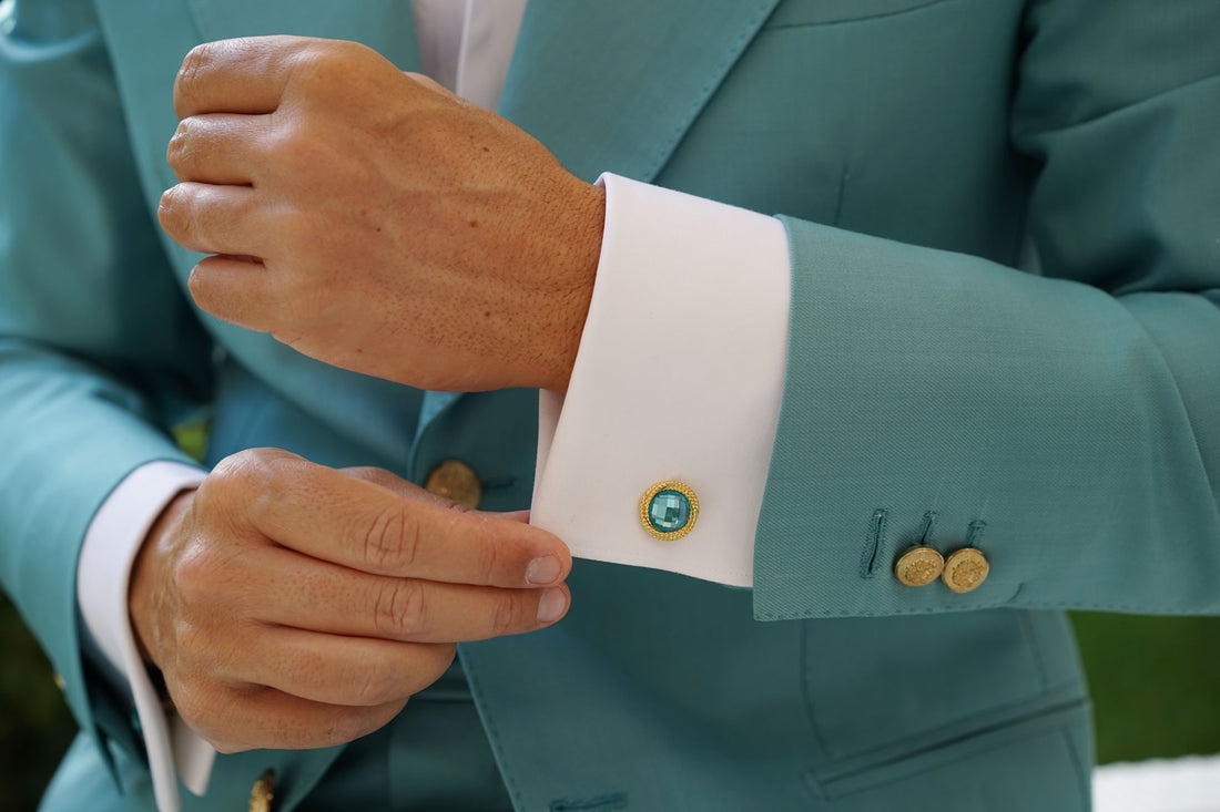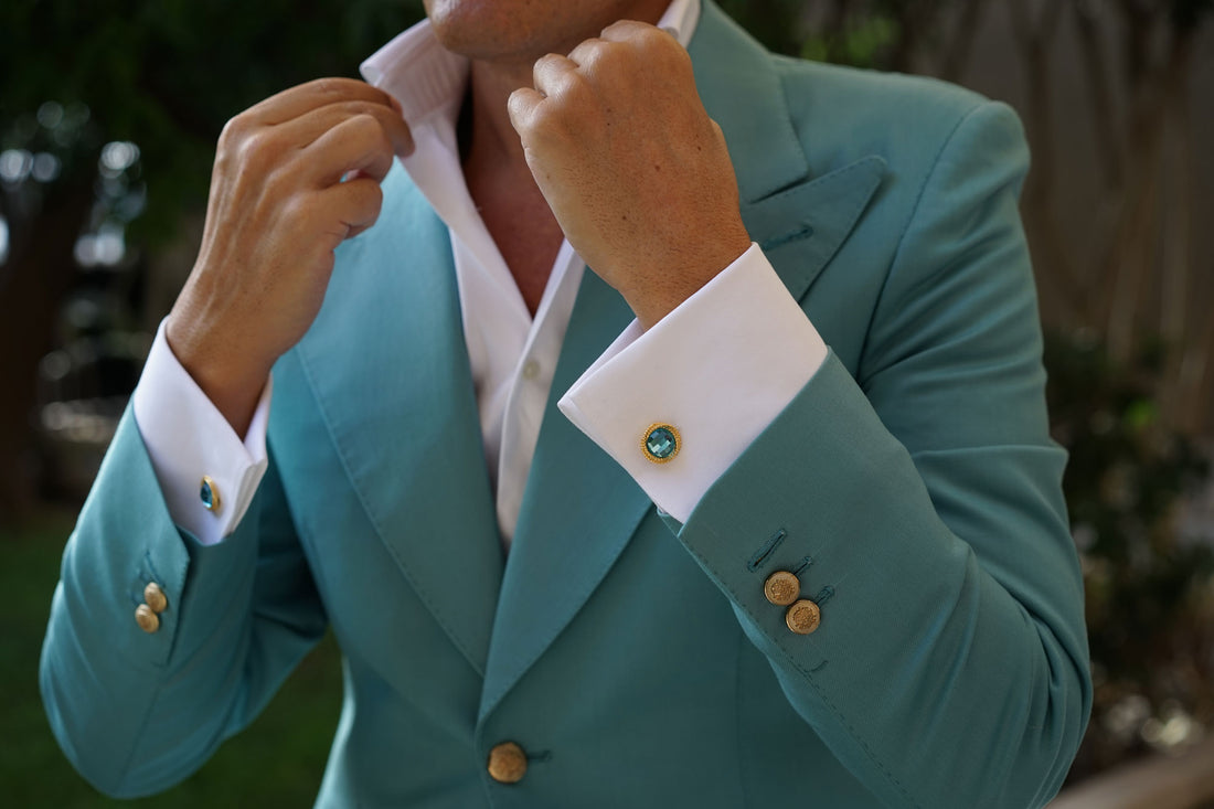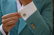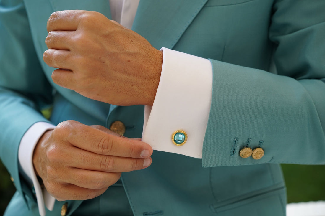 Immaculate craftsmanship and heroic detail are encased in the fruition of OTAA's The Gold Count of Monte Cristo Blue Cufflinks. Fashioned after a story of wrongful imprisonment, acquired fortune and relentless revenge, this cufflink design is an inspired tribute to the greatness of character a finessed ensemble can incite. In tribute to Edmond Dantes, the count, these lavish Gold Count of Monte Cristo Blue Cufflinks by OTAA exude a classically refined sense of style. Let the blue, ruby pattern add a smart accent to your formal outfits, for a look that can take you from the boardroom to a black tie event. These cufflinks are subtly detailed with a sheen and have been crafted from rhodium for a refined polish.