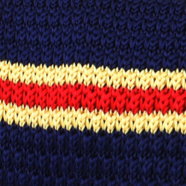 The exclusive designs by the Brothers at OTAA are often inspired by their travels abroad; The Moroccan Knitted Tie bares no exception. Inspired by the lively colours and bustling medinas of this North African country, this in-house design showcases exotic hues and enthralling textures. Embellished with ebullient navy, red and yellow details, this lustrous design emanates the cultured air of a well-travelled gent. Handcrafted to perfection from a plush knitted blend and tailored with a diamond-cut end, the Moroccan Striped Knitted tie delivers an exquisite feel and inviting appearance. The Moroccan Knitted Tie, when paired with crisp-whites, will have your evening ensembles looking fruitful with possibility.