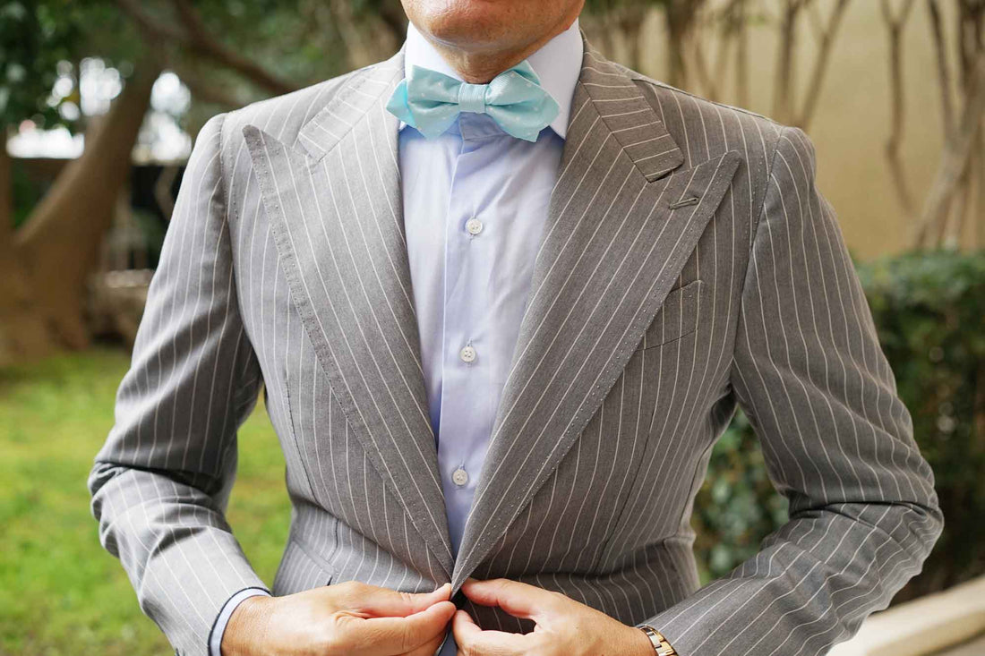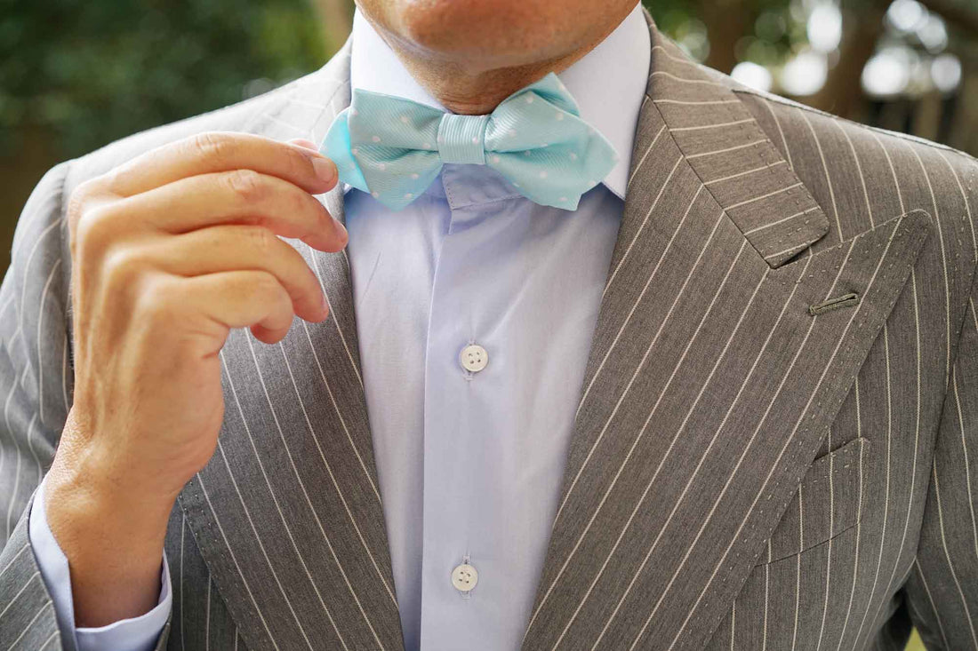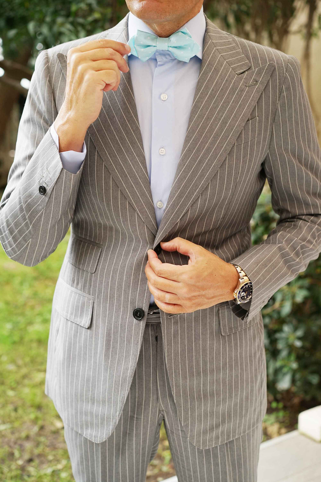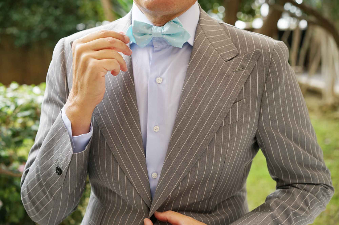 Lend yourself to the art of elegance with The OTAA Mint Blue with White Polka Dots Diamond Bow Tie. A signature piece from the label's first collection, this diamond bow tie offers intricate details that are hard to pass up. From its mint blue complexion to its hand-embroidered polka dots, The OTAA Mint Blue with White Polka Dots Diamond Bow Tie is set to give you a formal flourish. Underpinned by a dedication to premium quality, this diamond bowtie has been stitched by hand and tailored to perfection to ensure that you can step out the door with confidence every time. Designed exclusively by the Brothers at OTAA.