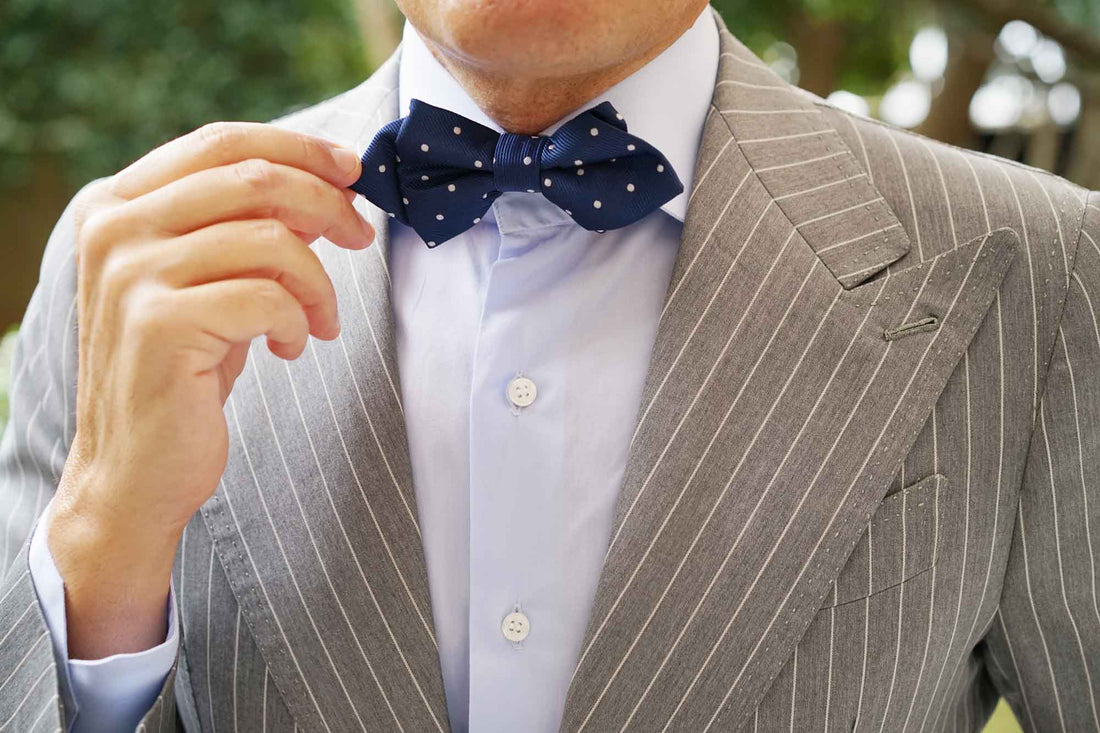 Get suited to lavish proportions with The OTAA Navy Blue with White Polka Dots Diamond Bow Tie. A signature piece from our original collection, the popularity of The OTAA Navy Blue with White Polka Dots Diamond Bow Tie has lasted the stamp of time. Imbued with the label's trademark navy, this diamond bowtie is tessellated with hand-embroidered white polka dots for an eye-catching point of difference. Backed by OTAA's signature high-quality ethos, The OTAA Navy Blue with White Polka Dots Diamond Bow Tie is underpinned by an extensive process of in-house design, hand stitching and meticulous tailoring before being parcelled up to you. Let its superb lined fabric reward you with an enhanced level of texture. Designed exclusively by the Brothers at OTAA.