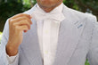 OTAA's elder brother, Mr Haroon, attributes the brand's impeccable tailoring of their White Cotton Self-Tied Diamond Tip Bow Tie to "a combination of cut, cloth and attention to detail." From its subtly smooth matte and dapper feel to the elegantly slim fit, the OTAA White Cotton Untied Diamond Tip Bow Tie excels on all three counts. Handcrafted, this style is finished with smooth matte-blend lining and internal stitching for complete robustness. Wear it against a pale blue shirt to play up the rich hue.