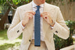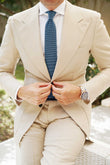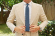 Completed with a refined square-cut finish and an enthralling double-toned blue palette. Pair this knitted tie with casual or formal attires to keep your wardrobe feeling fruitful with possibility.