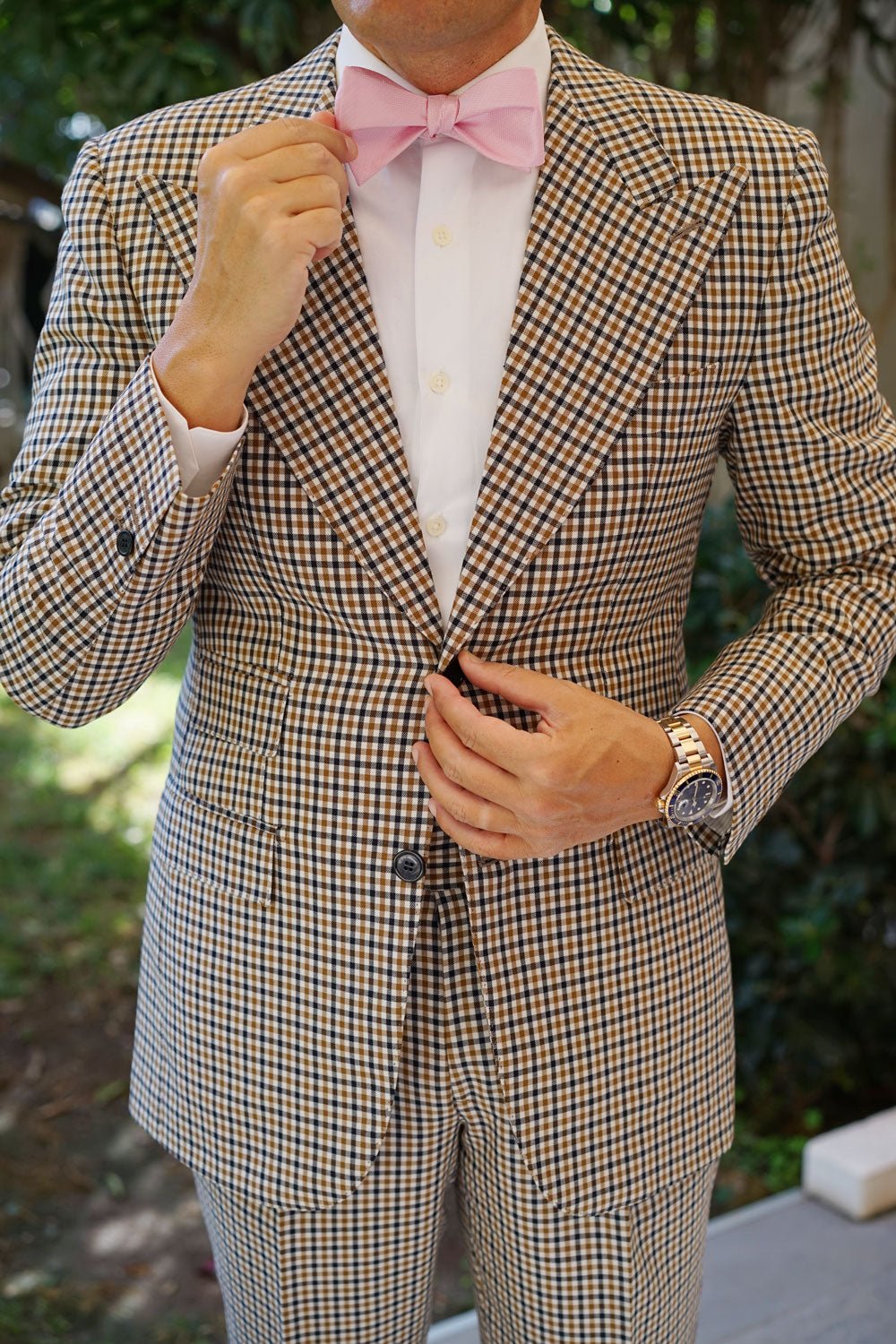 The Tickled Pink Chevron Self Tie Bow Tie is a charming and eye-catching little number, sure to add a healthy dose of flair to your magnificent outfit and leave you feeling a million bucks with your stellar choices of an Untied Bow Tie. Expertly trimmed to give your outfit a poised edge, this versatile piece is understated enough to perfectly marry to a wide range of your favourite fashion choices, while offering a refined highlight that will serve as the perfect jewel in the crown that is your outfit.