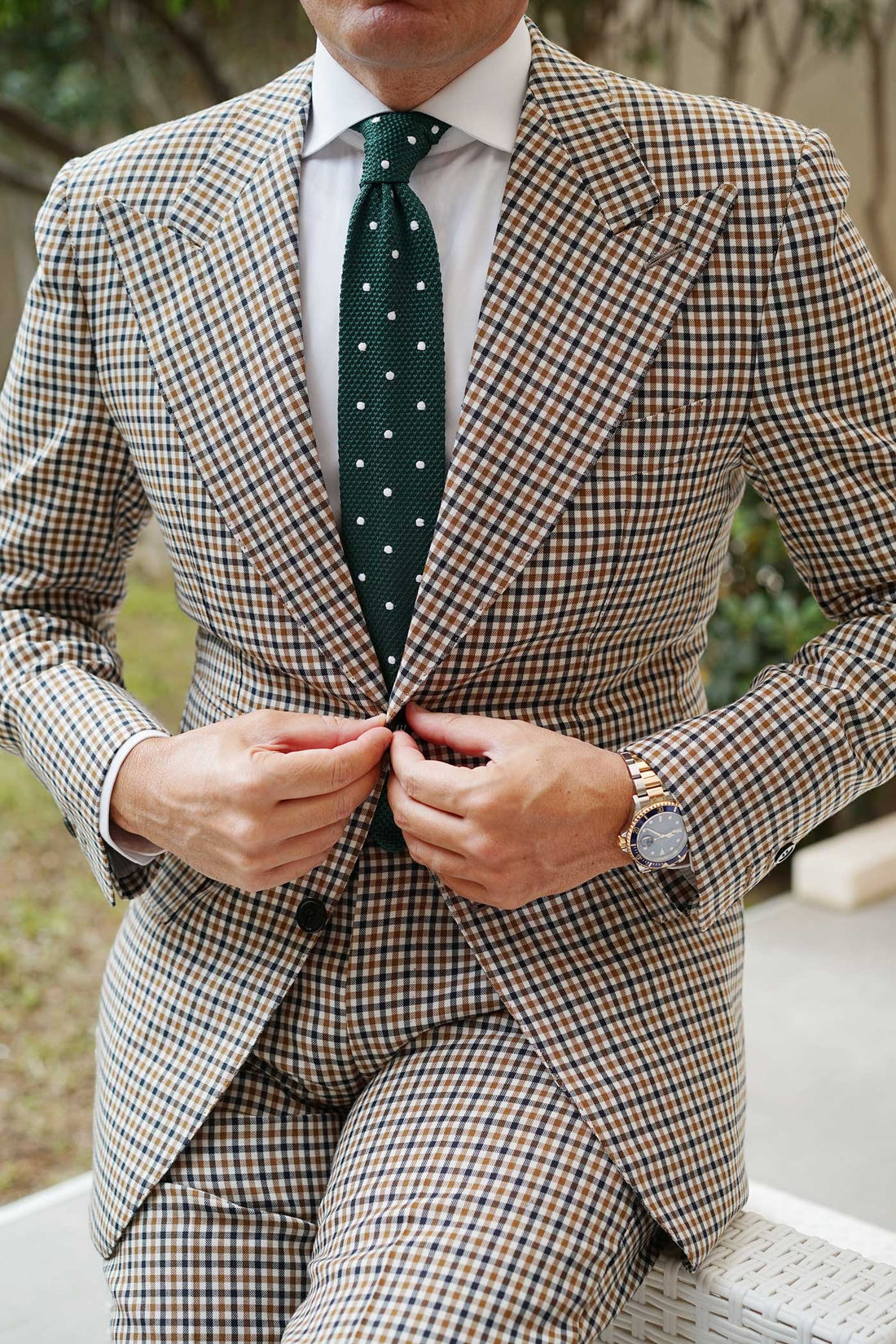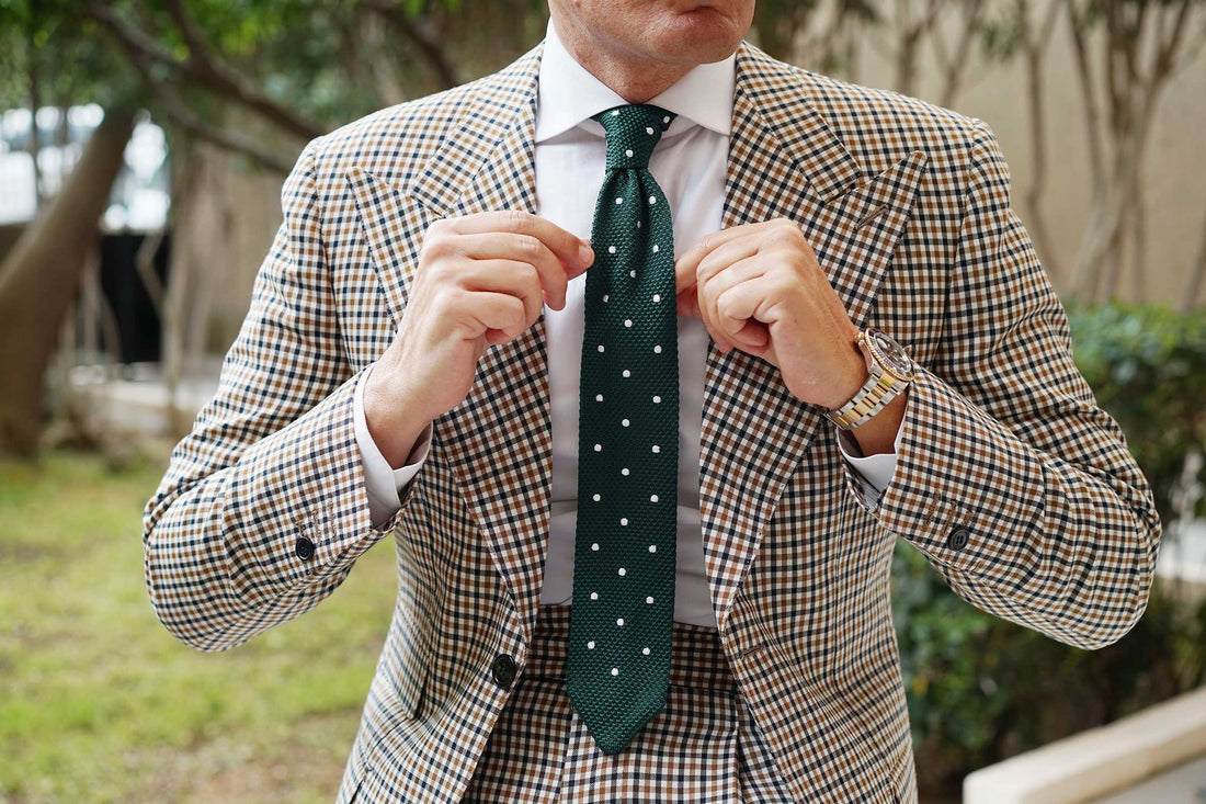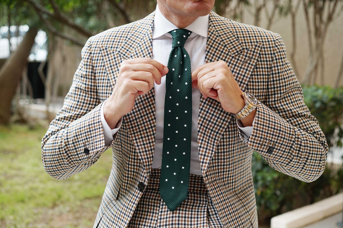 Amplify the exclusivity of your tailored looks with the evergreen complexion of OTAA's Tiera Green Knitted Tie. Handwoven to perfection from a plush textural knit, the superior quality of this tie is unmistakable. This knit was designed passionately by the Brothers here at OTAA and features alluring emerald green hues with ebullient white polka dots. An ideal staple to add a note of texture to your everyday ensembles, this Tiera Green Knitted Tie is finessed with a luxuriously comfortable body and diamond-cut end. Imbued with sentiments of class and good taste, let this exclusive knitted tie bring finesse to your overall appearance.