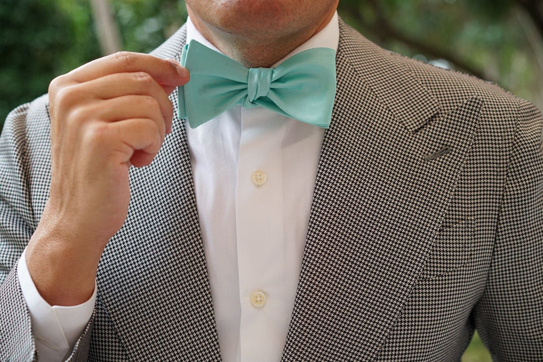 Tiffany Turquoise Spa Satin Self Tied Bow Tie