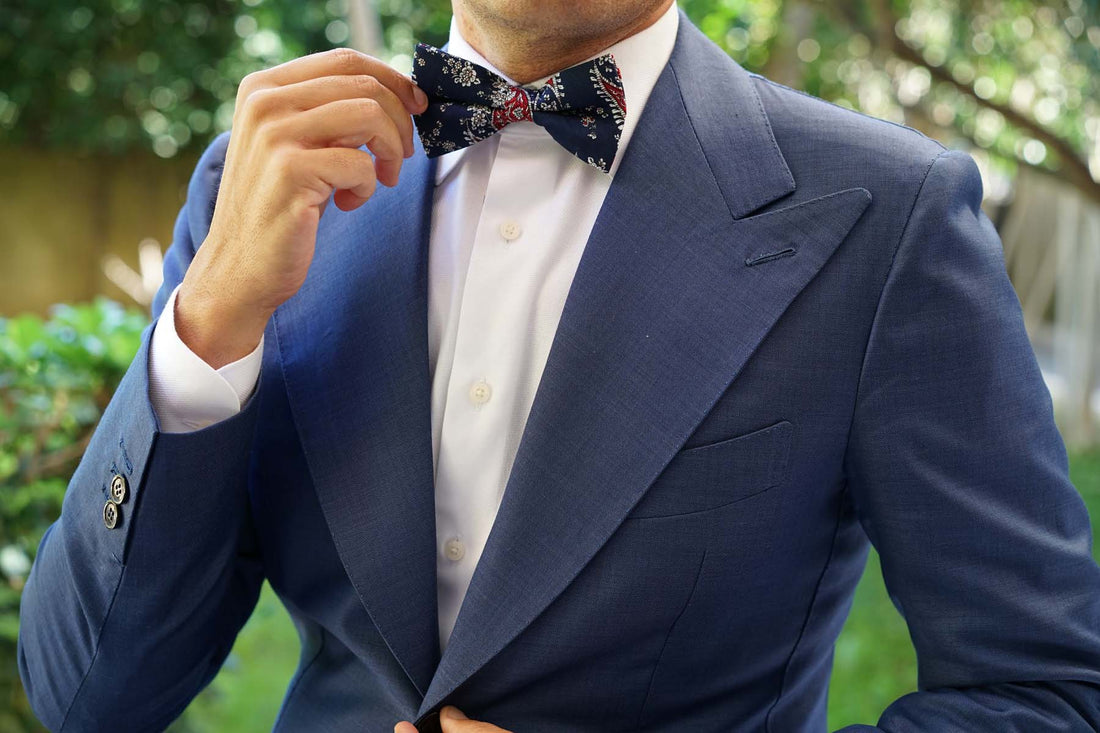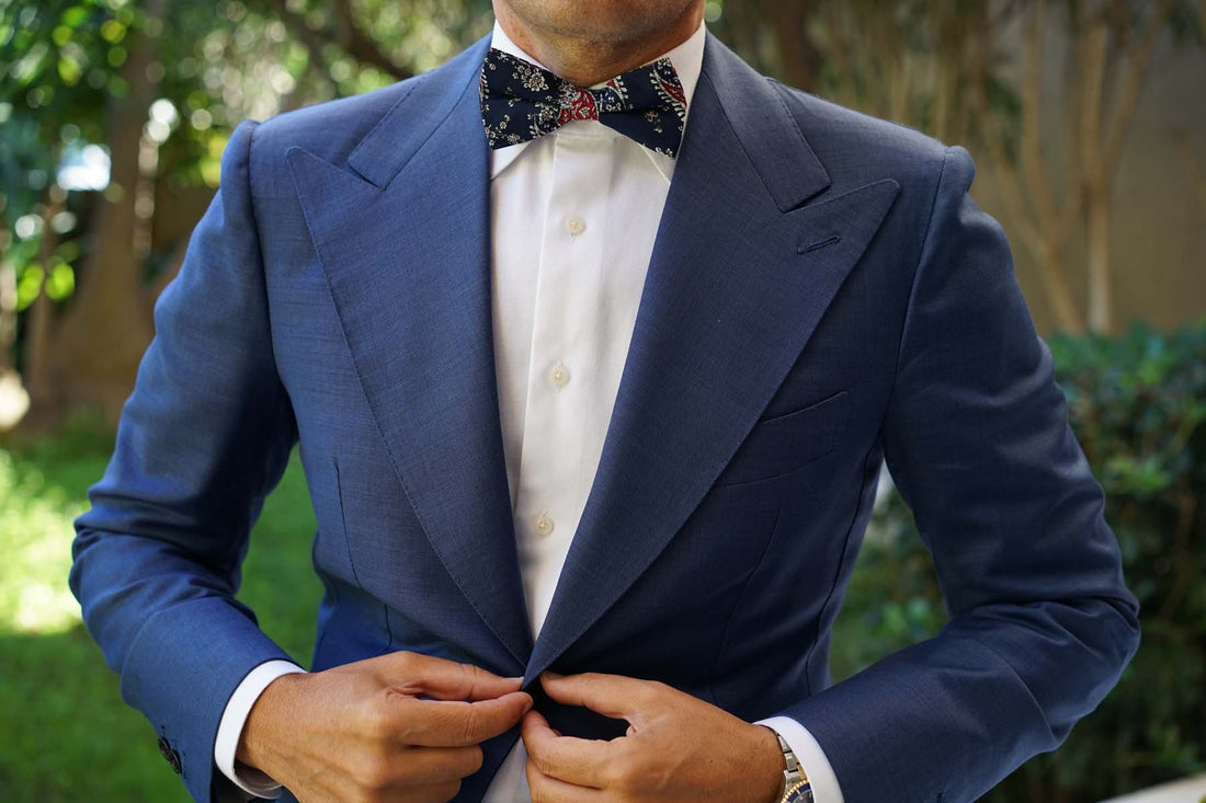 With a decadent hand-sewn approach to tailoring, the Trasimeno Blue with Red Paisley Pre-tied Bowtie exudes a smooth body and high quality presence. The ebullient navy blue, red and white palette is met with an enthralling paisley design to give your ensembles an artistic outlook. Wear the Trasimeno Blue with Red Paisley Bow Tie in the boardroom for an accomplished look. Designed exclusively by the Brothers at OTAA.
