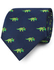 Crafted by hand and cut from a fine, navy fabric, this Triceratops Dinosaur Necktie adds a luxuriously comfortable staple to your wardrobe. In this design, mighty green dinos stomp across a navy blue canvas to give your daily styles a confident point of difference. With superb tailoring and subtly textured details, this necktie is a stand-out statement for high-quality style. Designed exclusively by the Brothers at OTAA.