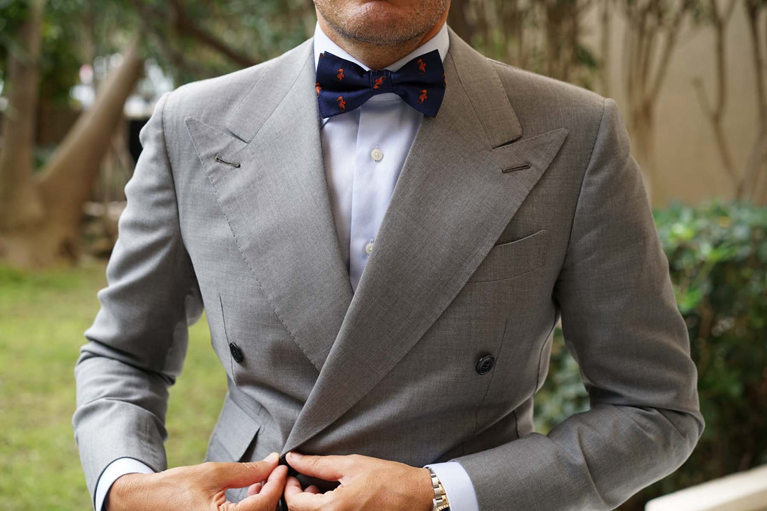 Luxurious details are part of OTAA’s rich history, and this superb pre-tied bowtie boasts plenty. Elegant tailored from a plush navy fabric, the Tropical Seahorse Bow Tie is hand-stitched to perfection. The navy blue base is beautifully complemented by red and orange seahorse motifs; inciting eye-catching detail in your ensemble. Designed exclusively by the Brothers at OTAA.