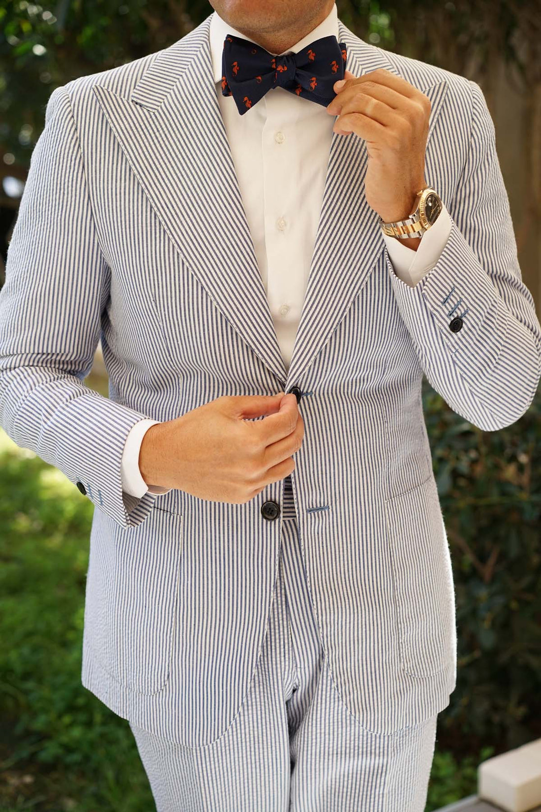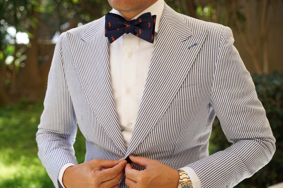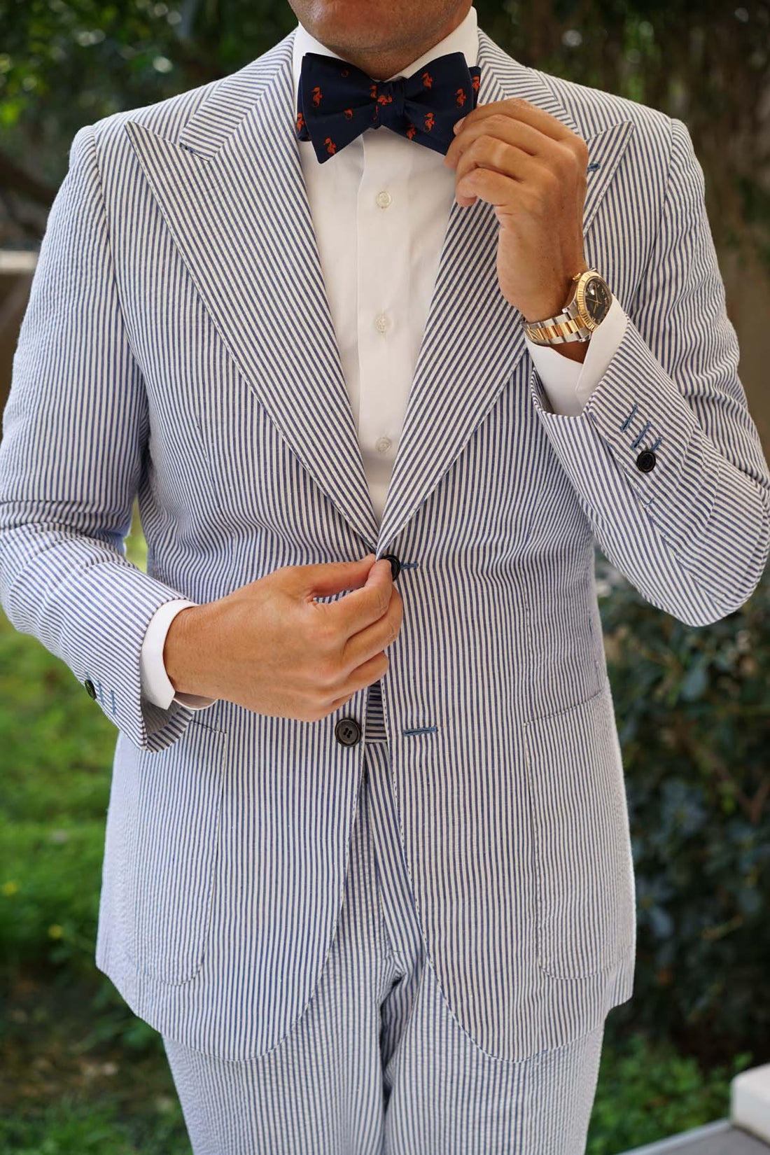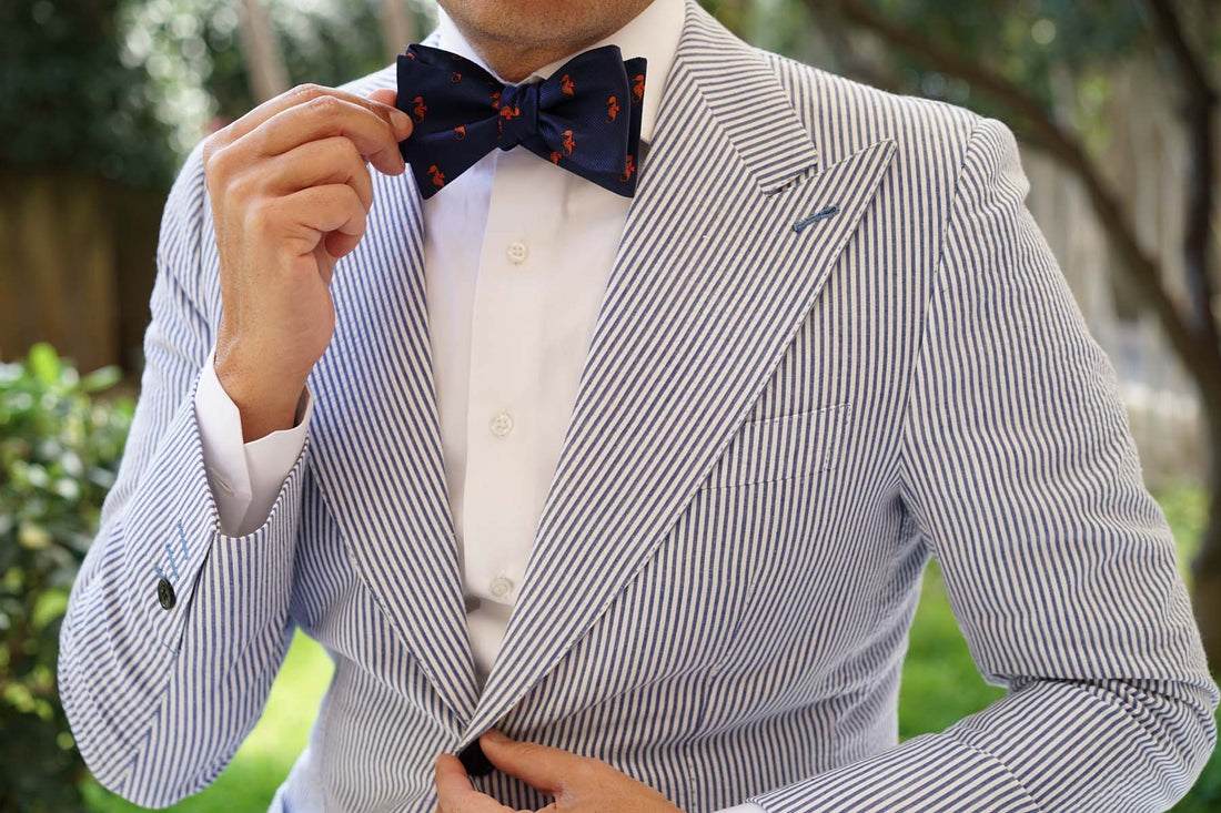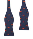 Luxurious details are part of OTAA’s rich history, and this superb untied bow tie boasts plenty. Elegant tailored from a plush navy fabric, the Tropical Seahorse Self Tie Bow Tie is hand-stitched to perfection. The navy blue base is beautifully complemented by red and orange seahorse motifs; inciting eye-catching detail in your ensemble. Designed exclusively by the Brothers at OTAA.