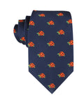 Orange and green turtles (slowly) crawl along a sumptuous navy blue canvas. Handcrafted from a fine, navy fabric and tailored to perfection, this Tropical Turtle Tie showcases an unsurpassed level of quality. Subtly textured with diagonal lines, this necktie makes the perfect staple for your boardroom styles. Designed exclusively by the Brothers at OTAA.