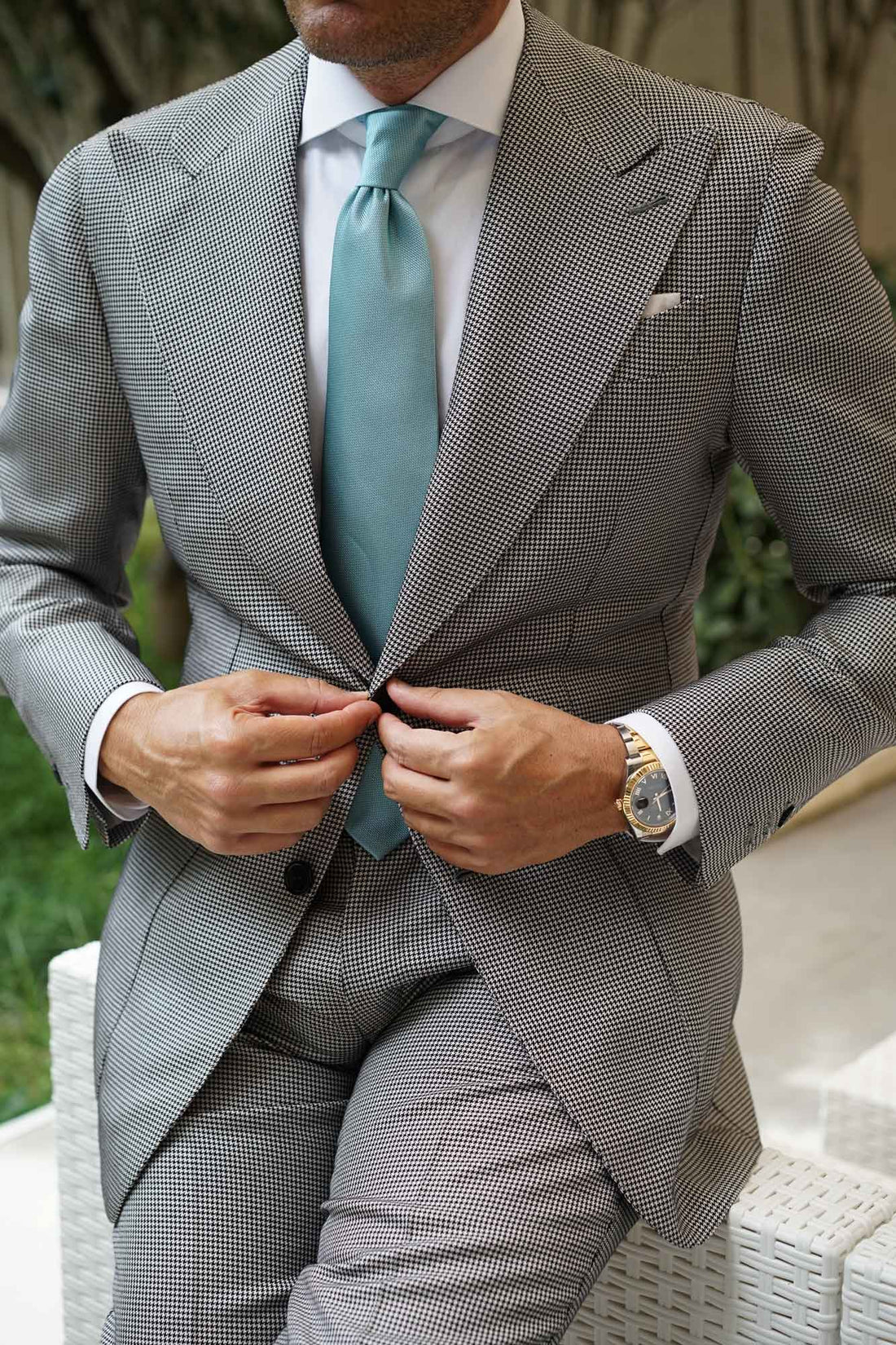 The prime objective of OTAA is superior quality in the craft, the Turkish Teal Blue Weave Necktie attests to the success of this labour of love. Inspired by the captivating colour of the Mediterranean Sea that crashes into the shores of Turkey, expertly hand-woven exclusively by The Brothers at OTAA, this top-shelf necktie trimmed in dusty mint is a natural beauty that will whisk your wardrobe to the next level of style.