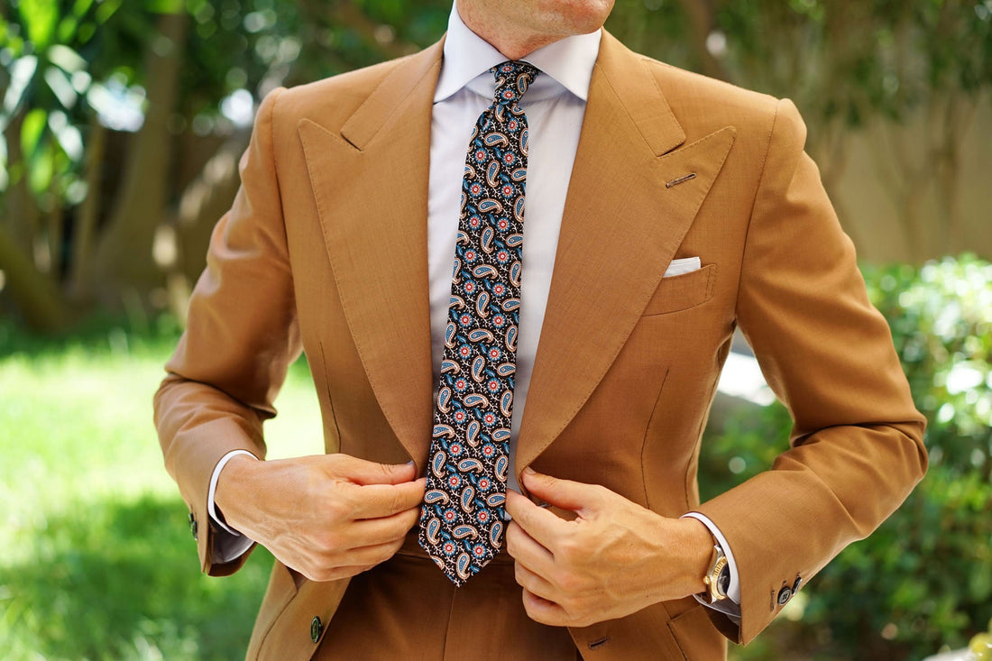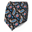 Finessed with an artisanal teardrop design, this thin tie exudes an indulgent black palette. The floral motifs and intricate design are reminiscent of the designs that originated in ancient Persia. Ebullient sapphire, red, beige and white highlights decorate this skinny tie with a sophisticated tone. Hand-stitched and tailored with elegance, the Turkmenistan Paisley Skinny Tie is a fruition of the label’s high-quality philosophy.