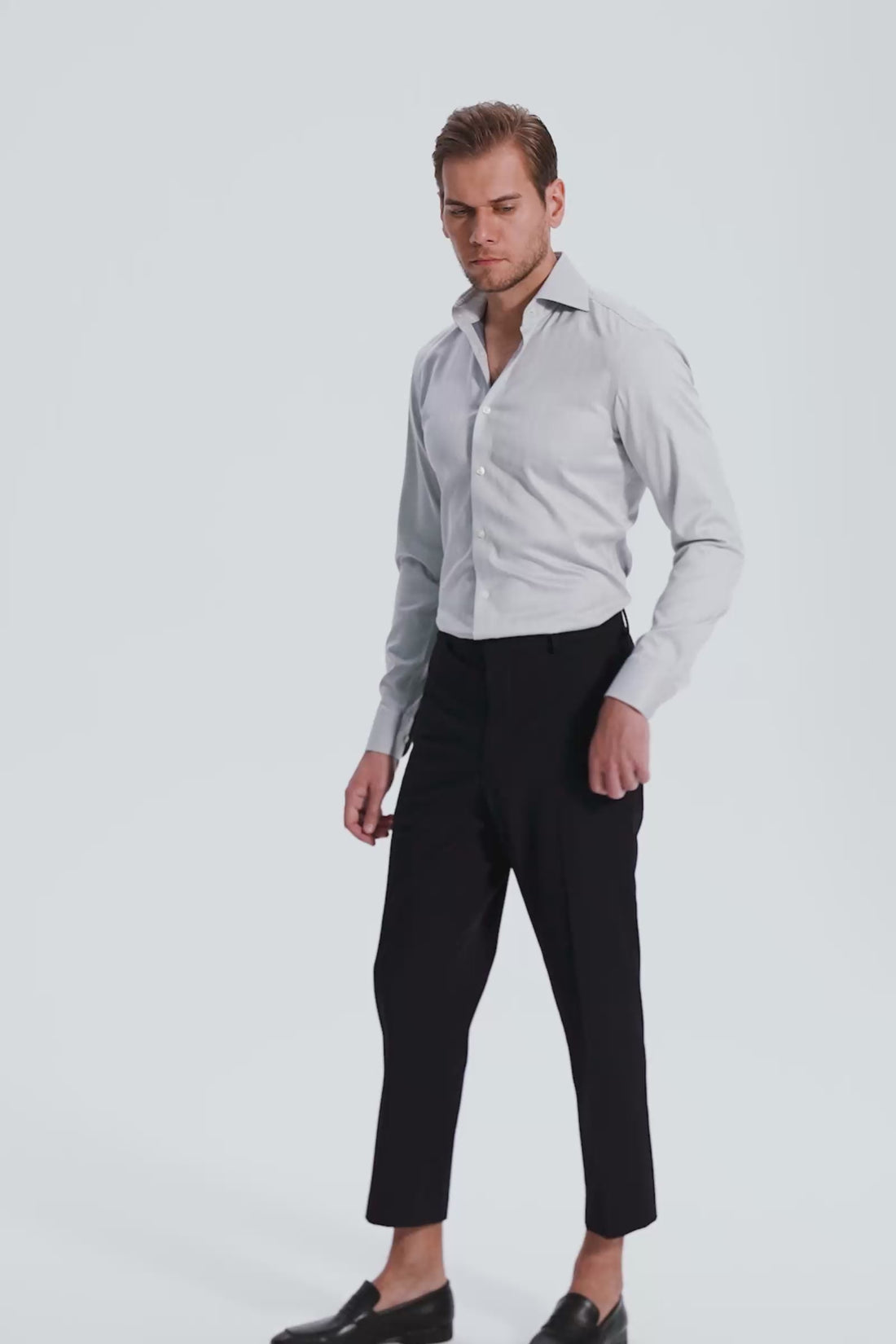 The non-iron finish ensures you stay crisp and polished throughout the day with minimal effort. Featuring an in-built soft collar stay, this shirt maintains a sharp and professional look. The adjustable button cuffs provide a tailored fit, while the clean finish without top stitching enhances its sleek, modern aesthetic. Durability is key, with the fabric standing up to frequent washing, making it a reliable and stylish addition to your wardrobe. Perfect for the discerning gentleman, this shirt combines timeless design with contemporary convenience.
