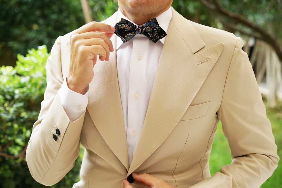 Venetian Lagoon Blue Paisley Fabric Mens Diamond Bowtie