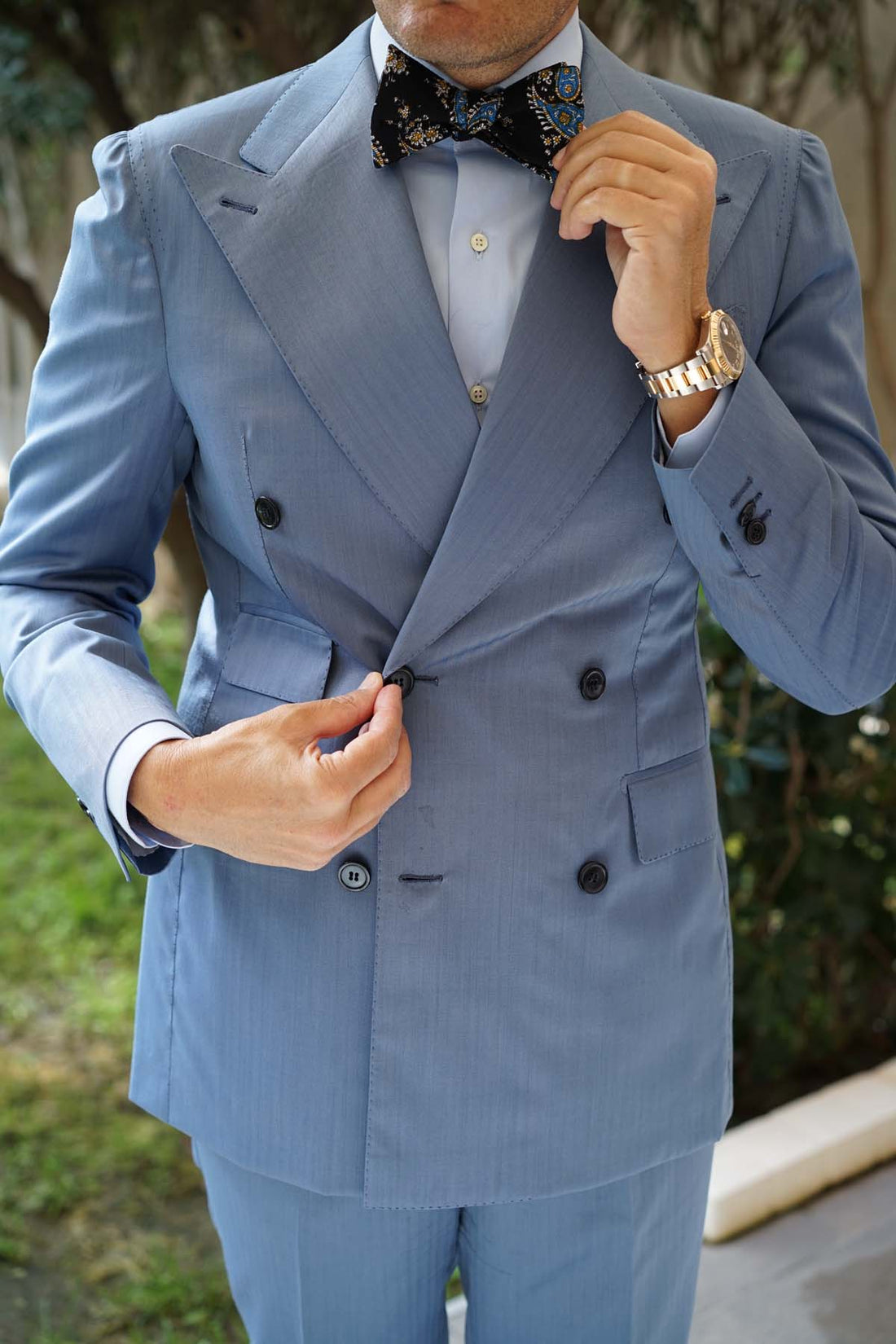 Detailed and contemporary, the Venetian Lagoon Blue Paisley Self Tie Bow Tie offers an artisanal outlook to your formal tailoring. Venice was a major economic and maritime power during the Renaissance and Middle Ages, and the stage for the Battle of Lepanto. Once its own autonomous region, Venice is still revered for its influential artistic movements that took place during the Renaissance era. The artistic inclination of this Italian city is reflected through the exquisite features of this untied bow tie.