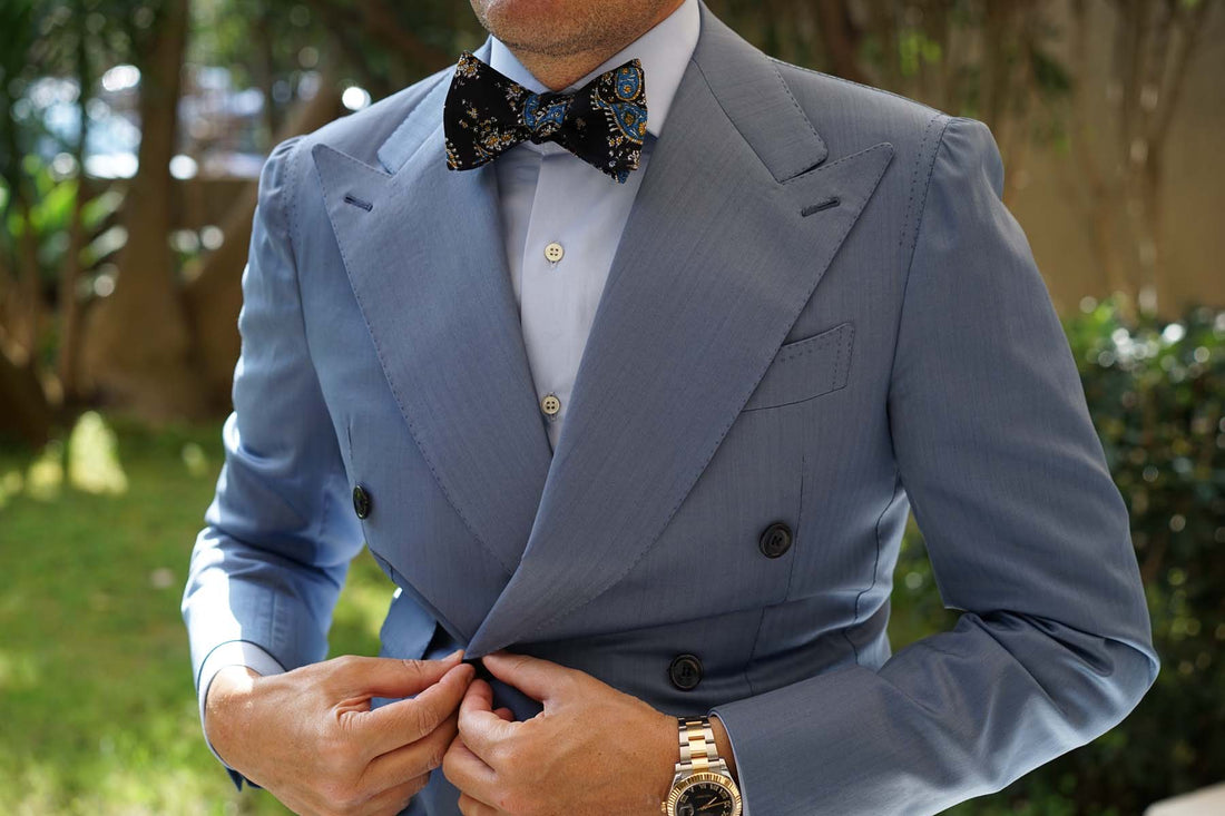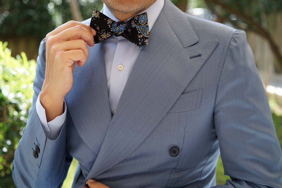 Venetian Lagoon Blue Paisley Fabric Self Bowtie