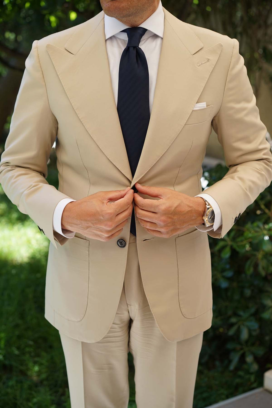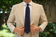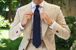 The elaborate hand-stitched weave of the navy-blue satin fabric gives a gentle sheen, like the depths of the Venetian canals themselves. The satin is light, and the fine texture of the diagonally striped design gives a slight coarseness to the soft overall feel of the fabric. Navigate your formal occasions with the deftness of a gondolier through the water, with the Venice Navy Blue Tie from The Brothers at OTAA.