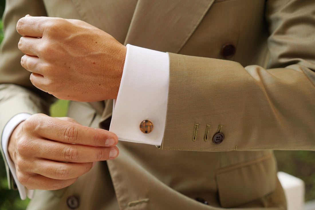 Includes a small cylinder at the back that rotates 90 degrees to hold the cufflink in place