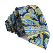 Vivaciously adorned with a multi-toned palette, it is unmistakable this Vivara Yellow on Blue Paisley Skinny Tie will inject colour to tailoring. The navy backdrop is paired with ebullient yellow, green and blue features with subtle hints of white and purple for a flamboyant outlook. The label’s hand-stitched approach to tailoring means this Skinny Tie is smooth to the touch and makes a high-quality statement. Designed exclusively by the Brothers at OTAA.