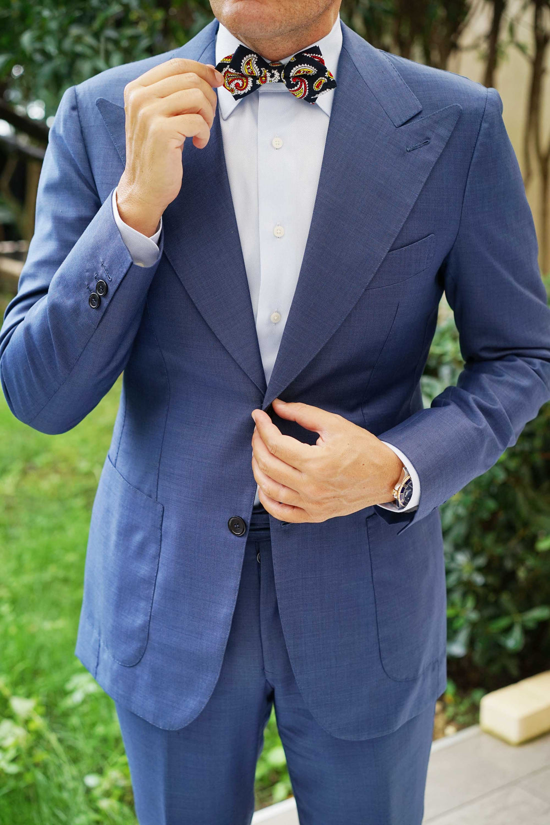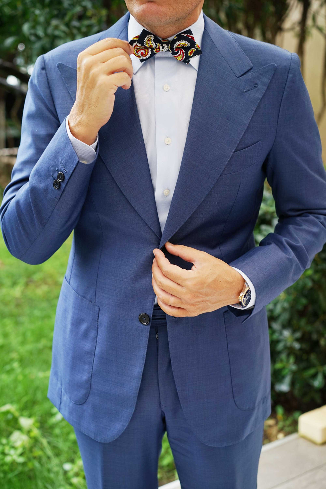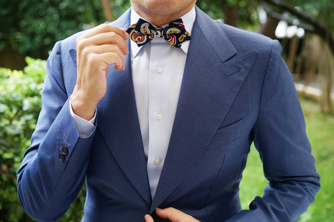 To conduct research for this Vulcano Red & Yellow Paisley Diamond Bowtie, the Brothers at OTAA went snorkelling on the Island of Vulcano in Italy. Inspired by the vibrant fish and exotic corals they saw, this diamond pre-tied bowtie was designed under clearly miserable conditions. After a month’s long research trip, the brothers finally present you with the Vulcano Red & Yellow Paisley Diamond Pre-Tied Bowtie. Now they need a vacation.