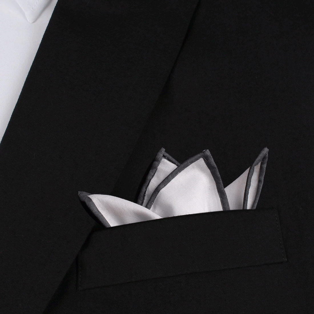 The White Cotton Pocket square with Charcoal Grey Border was designed to imply