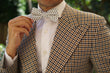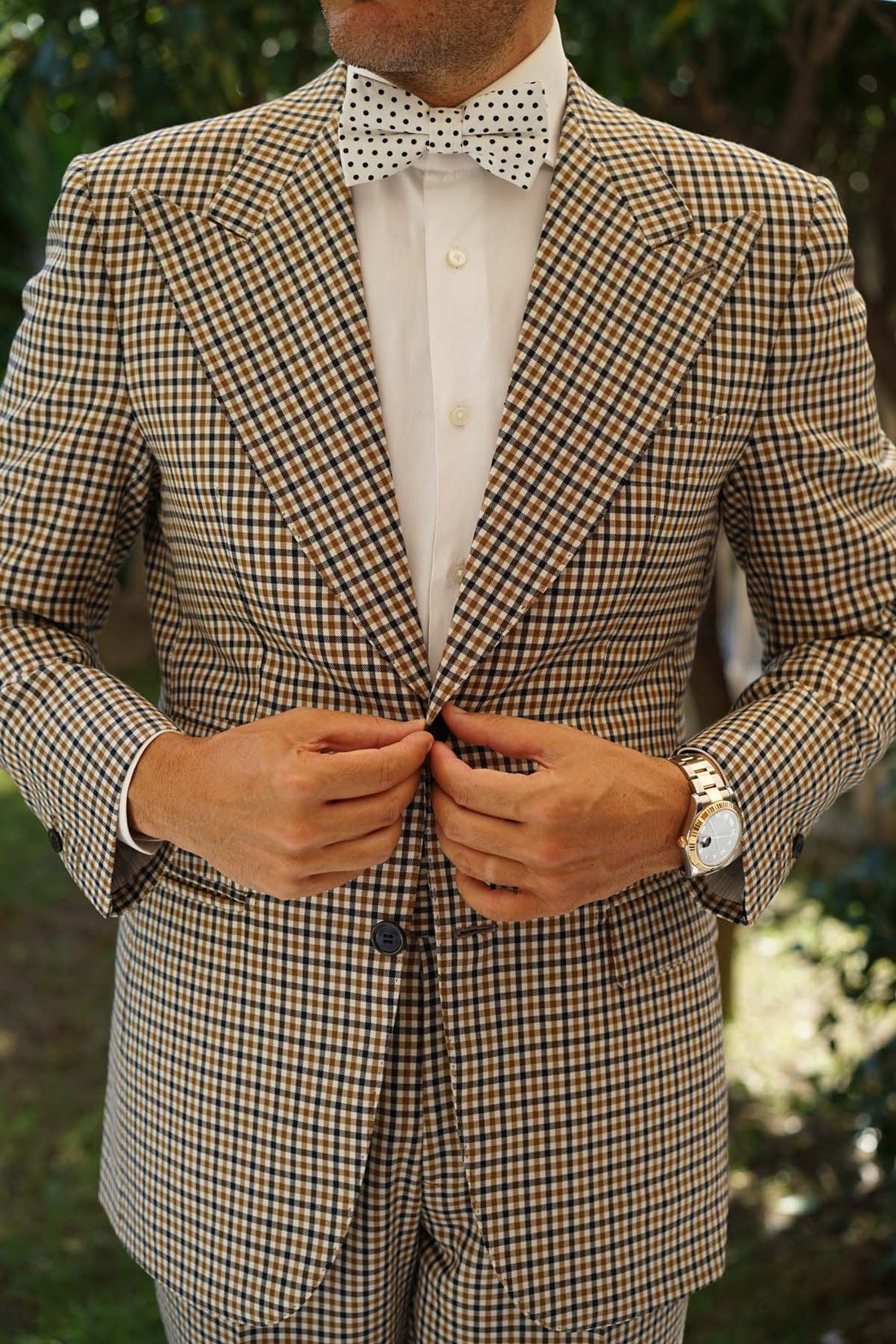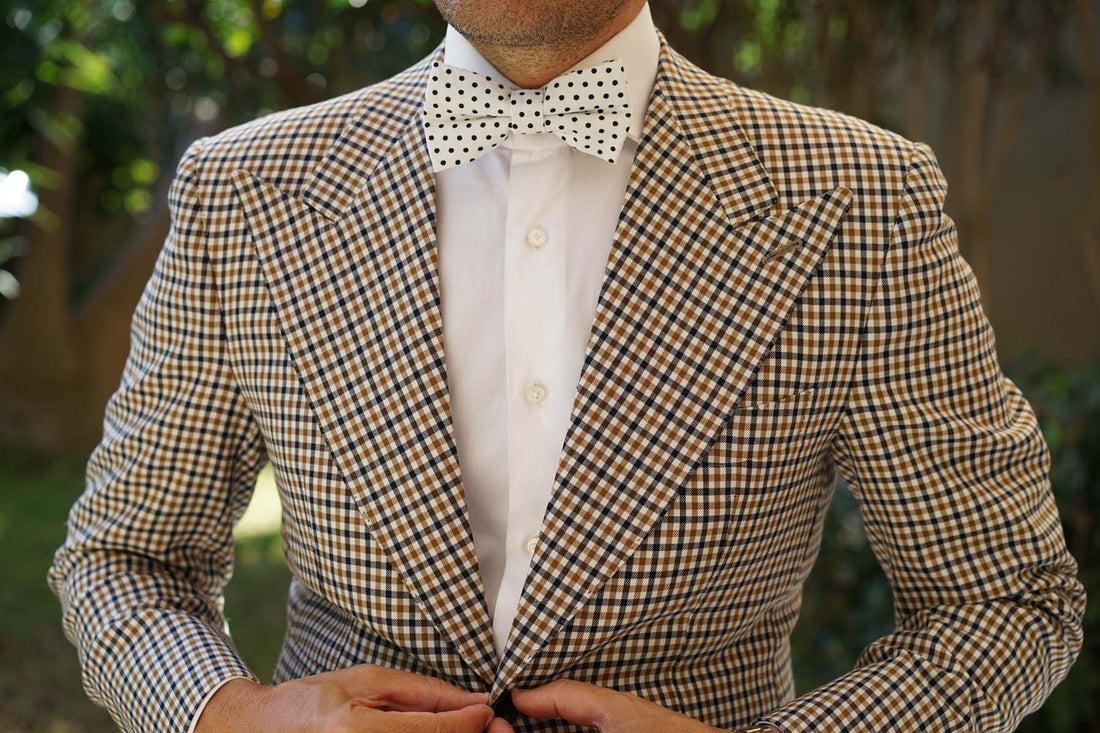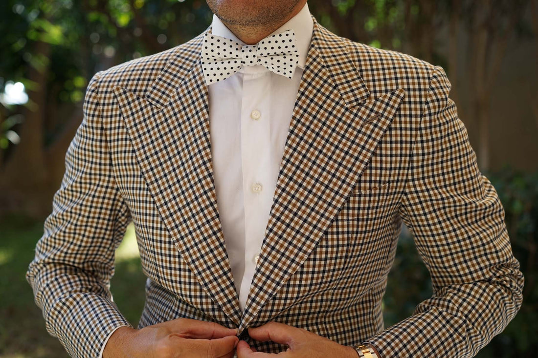 Add extravagance to your tailoring with OTAA's White with Black Polkadot Cotton Bow Tie. Sweetly speckled and constructed with expertise, this pre-tied bowtie exudes an essence of timeless elegance. The sophisticated black and white palette brings a refined balance to the frivolous dotted design. Hand-stitched from a lustrously smooth fabric, this White with Black Polkadot Cotton Bow Tie effortlessly marries sophistication with unmistakable quality. Let this in-house design bring an artisanal outlook to your formal and boardroom tailoring.