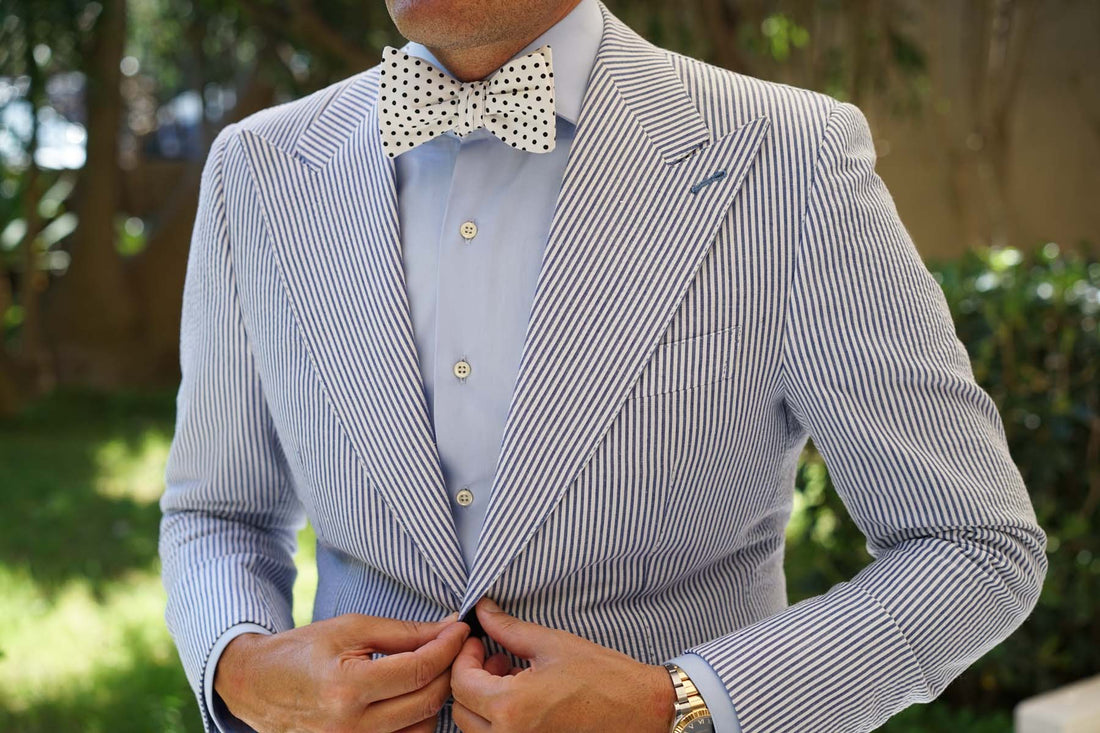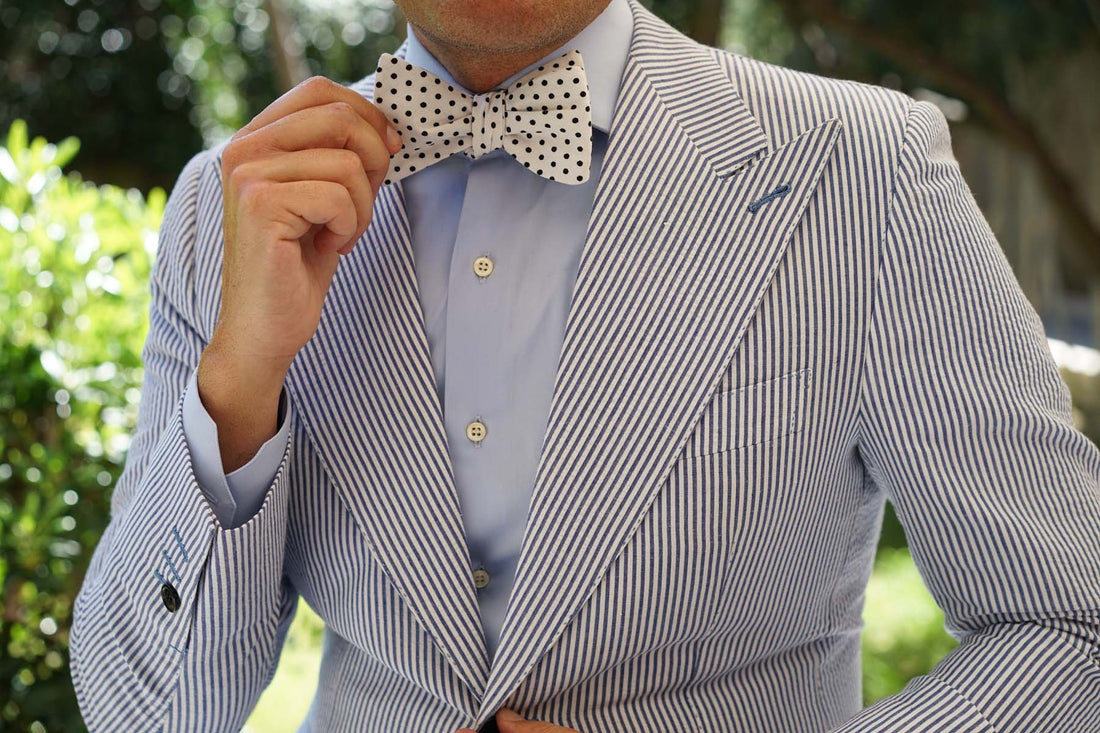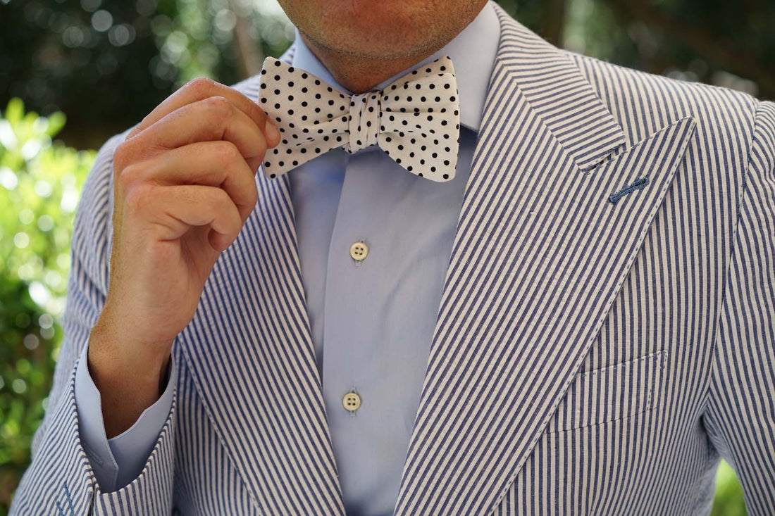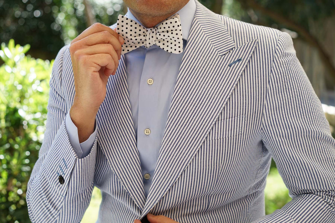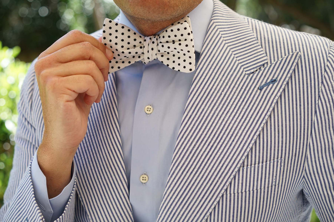 Add extravagance to your tailoring with OTAA's White with Black Polkadot Cotton Self Tie Bow Tie. Sweetly speckled and constructed with expertise, this untied bow tie exudes an essence of timeless elegance. The sophisticated black and white palette brings a refined balance to the frivolous dotted design. Hand-stitched from a lustrously smooth fabric, this White with Black Polkadot Cotton Self Tie Bow Tie effortlessly marries sophistication with unmistakable quality. Let this in-house design bring an artisanal outlook to your formal and boardroom tailoring.