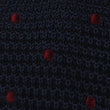 This splendorous tie is basked in enthralling navy hues that's brimming with an air of nautical finesse. The maroon polka dots add a subdued touch of warmth and an intricate design to compliment the deep palette. Handcrafted immaculately from a textural knitted blend, the Winnfield Navy Blue with Maroon Polkadots Knitted Tie is finessed with a square-cut end for a versatile staple.