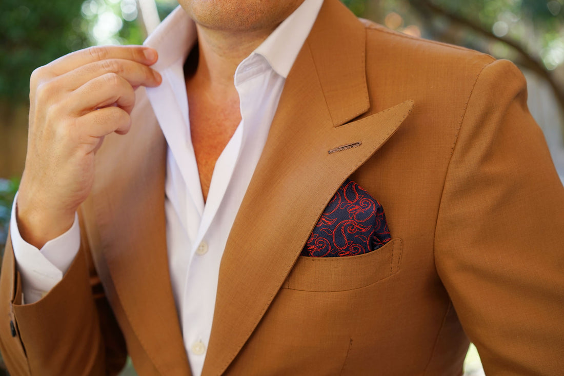 Yazd is a historic city located in the middle of the Iranian plateau. Close to the spice and silk roads, world-renowned for their role in establishing trade throughout remote regions of the East - the city of Yazd carries the sentiment of an age burgeoning into success. The theme of this striking Yazd Red Paisley Handkerchief design laid out on a deep midnight blue canvas of satin with a matte sheen, pays homage to the beauty of the Iranian city of Yazd in all of its glory. Designed exclusively by The Brothers at OTAA.