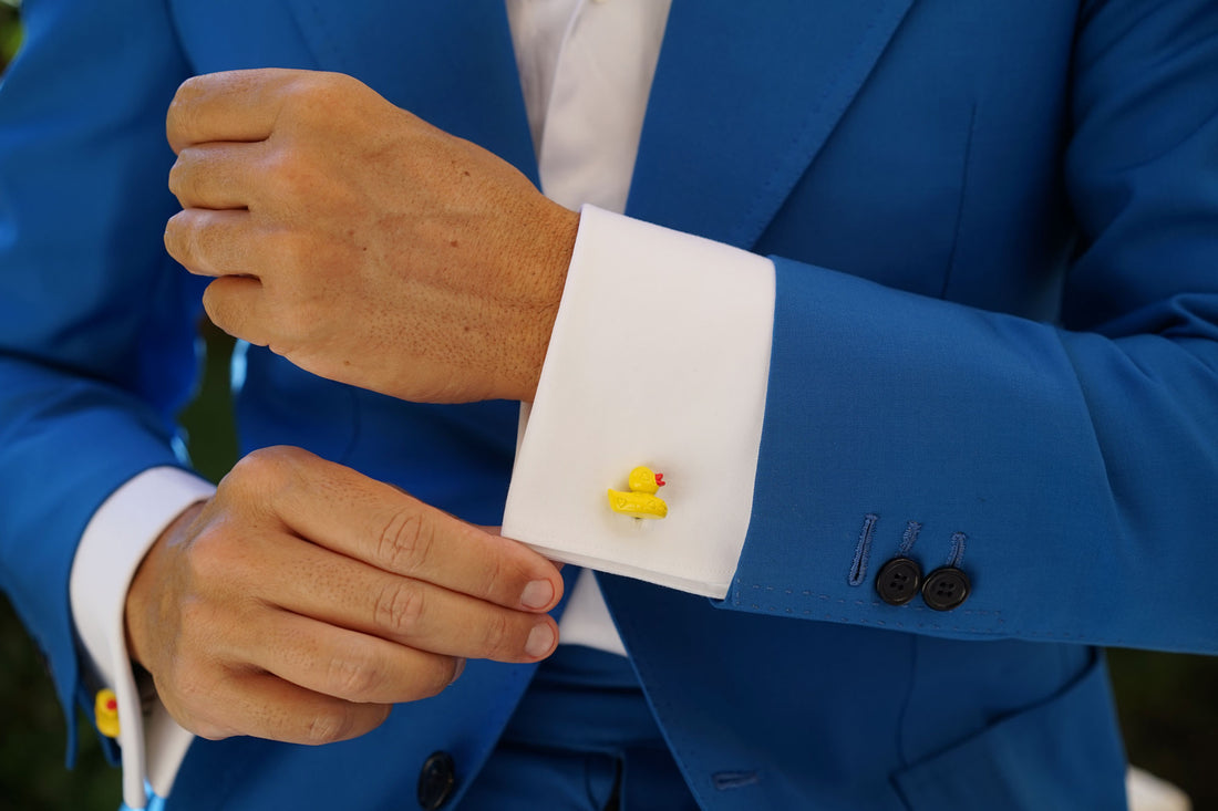 Whilst the ducks were sleeping, the Brothers at OTAA were at work designing the next cufflink style. Finally, one of the brothers came out with the Yellow Duck Cufflinks. OTAA's Yellow Duck Cufflinks is one of the label's most whimsical signatures. Cut from smooth rhodium plates and printed with a yellow sheen, this slick cufflink is adorned with a aquatic-tone and completed with curved edges. Wear yours to add a unique finish to your look.