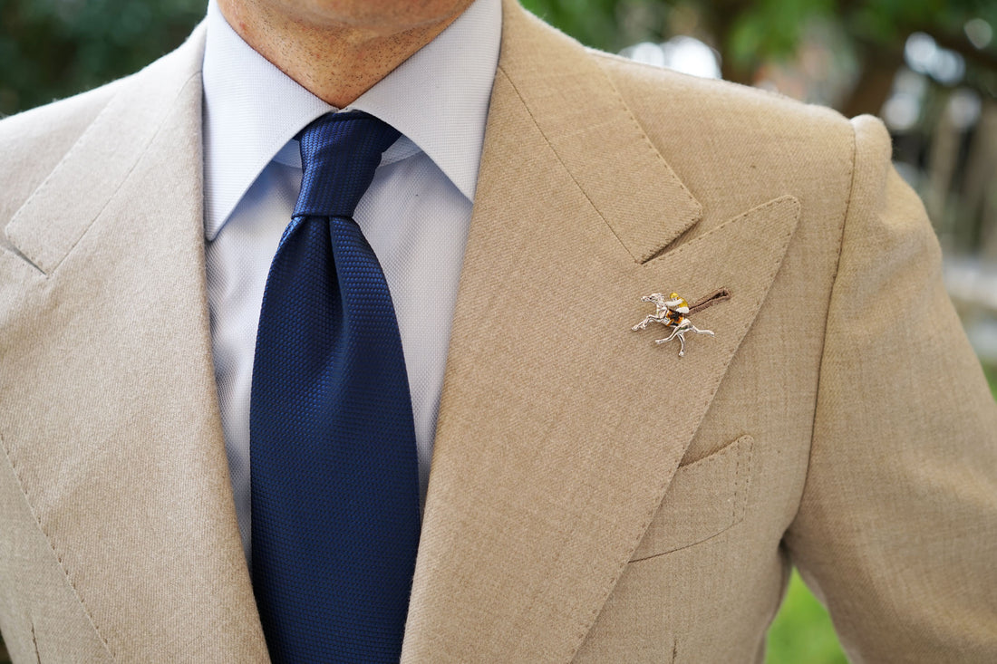 Add a sophisticated staple to your race day styles with OTAA’s Yellow Jockey Racehorse Lapel Pin. It’s off to the races with this elegant pin, the perfect summary of what has been dubbed “the greatest two minutes in sports". This debonair Yellow Jockey Racehorse Lapel Pin was designed to put a winning edge in your stride at this year’s races.