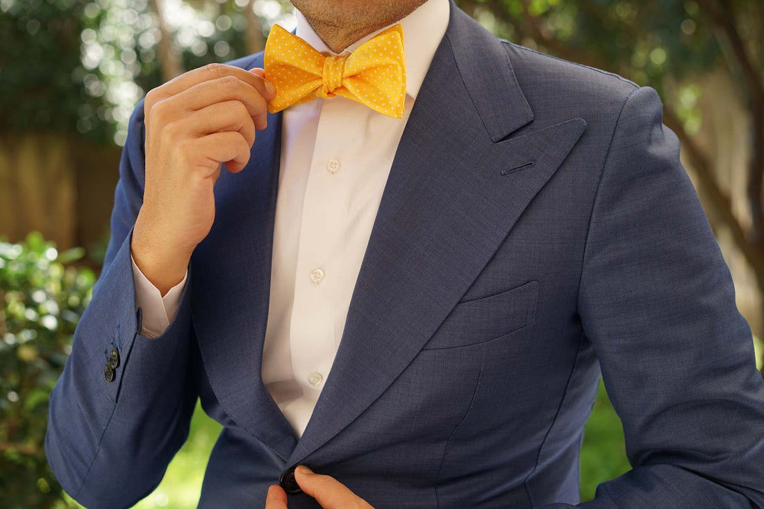 Crafted by hand and heavenly detailed, OTAA’s Yellow Mini Polka Dots Self Tie Bow Tie is a faultless choice for formal dressing. Superbly stitched with debonair white dots, this untied bow tie adds a fanciful twist on classic bow tie designs. The vivacious yellow palette gives your styles a confident look and will imbue an aspect of extravagance. Hand-stitched and tailored from a fine satin, this Yellow Mini Polka Dots Self Tie Bow Tie is as high-quality as they come. It boasts a subtle lustre finish for a dapper appeal. Designed exclusively by the Brothers at OTAA.