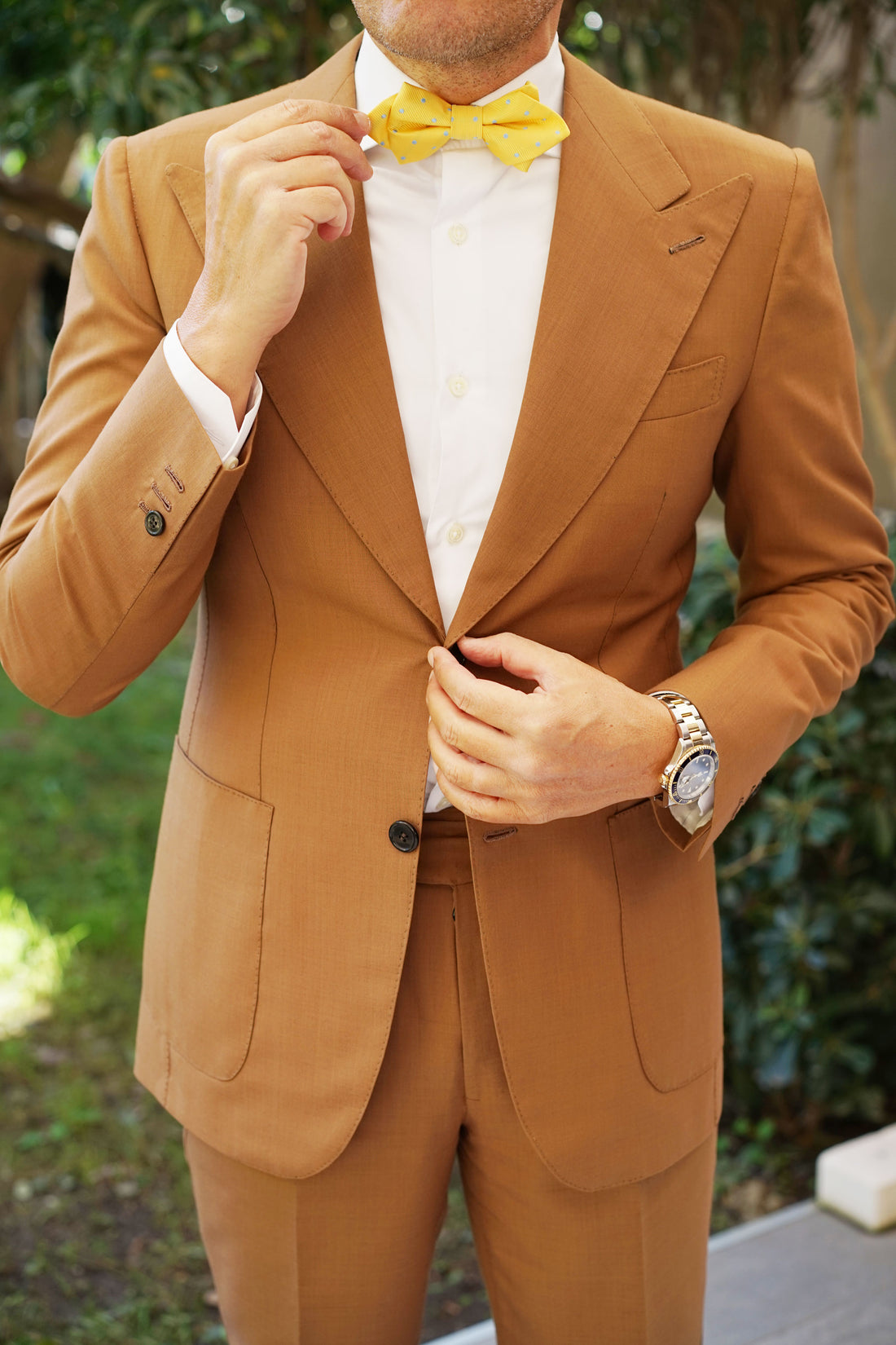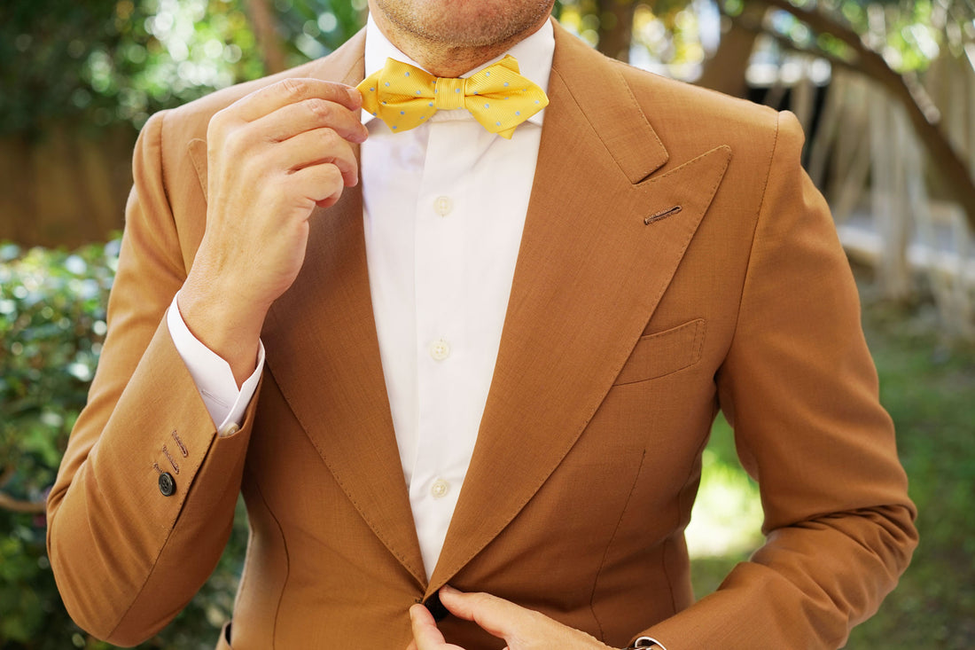 The Yellow on Blue Pin Dots Diamond Bowtie is hand-sewn to perfection using little machine interference. With a lustrous fabric and exquisite texture, this diamond pre-tied bowtie features ebullient yellow hues with artistic blue polka dots. The fine quality of this Yellow on Blue Pin Dots Diamond Pre-Tied Bowtie is observed through its luxurious lined textures that are embellished throughout. Pair this on-of-a-kind diamond bowtie with a suave suit ensemble to channel an accomplished aesthetic at every occasion. Designed exclusively by the Brothers at OTAA.